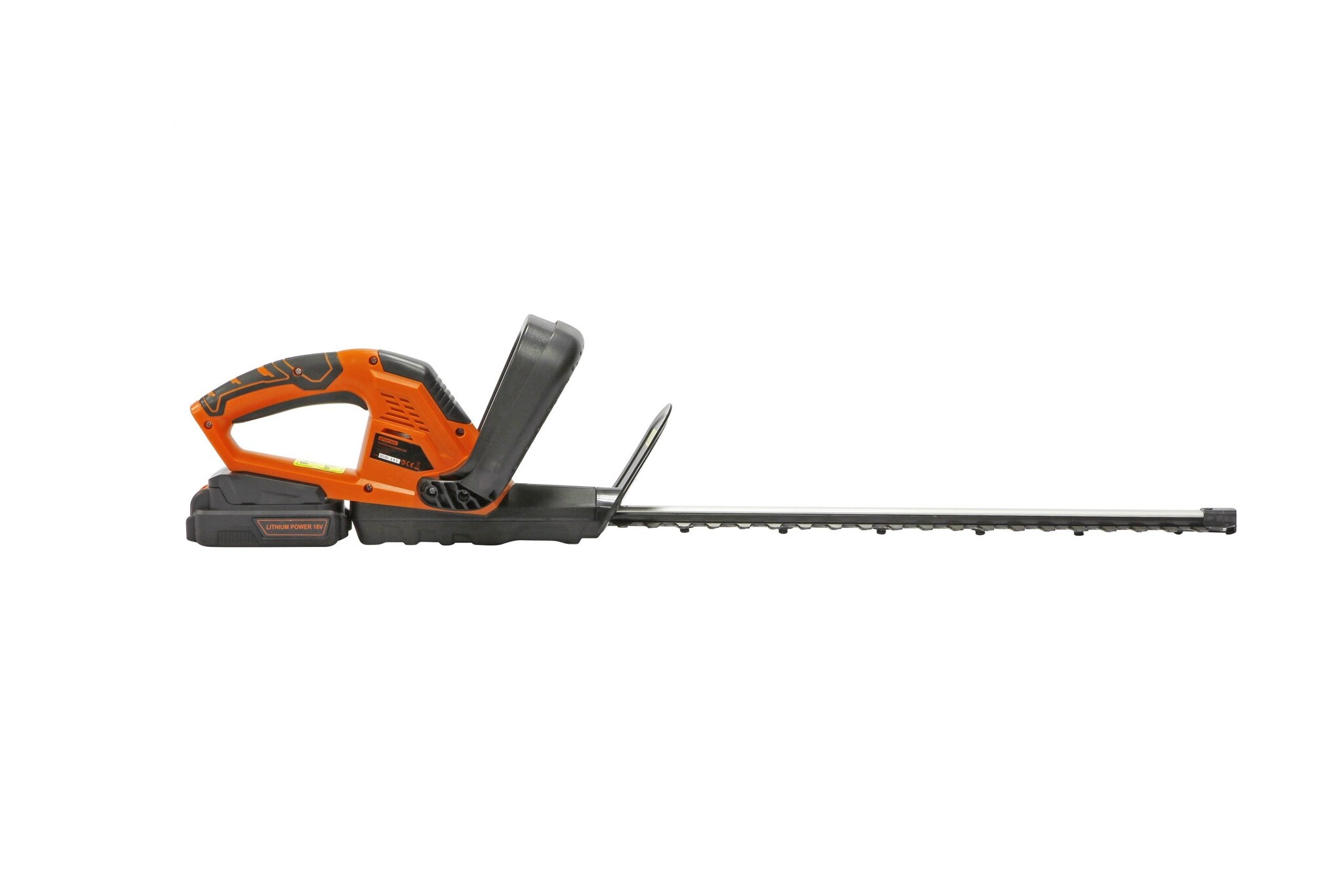 De heggenschaar heeft een mes van maar liefst 51 centimeter lang, waardoor je razendsnel flinke oppervlakken kunt snoeien. De machine heeft een vermogen van 18V en snoeit moeiteloos takken met een dikte tot 16 mm. Stil, licht en praktisch onderhoudsvrij.