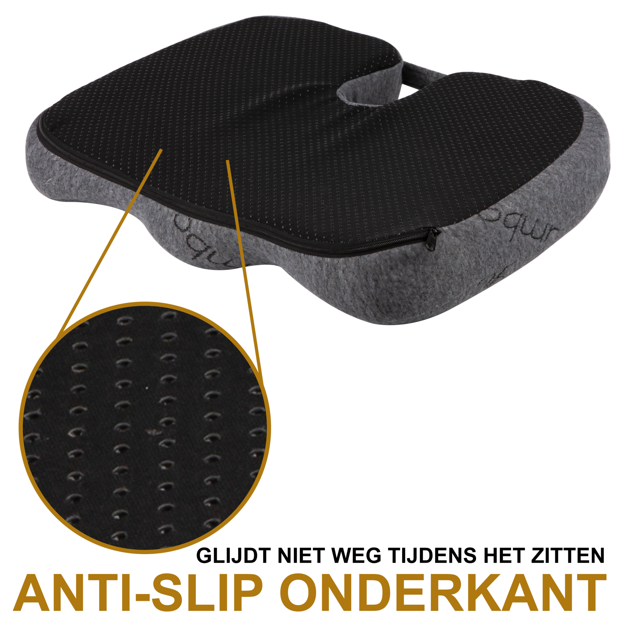 Heb jij ook last van nek- en rugklachten? Vaak heb je het niet door maar zit je al snel in een verkeerde houding. Dit zitkussen van Alora helpt je daar een handje bij. Door de traagschuim vulling vormt het kussen zich naar de vorm van jouw lichaam. Hierdoor blijf je in een goede houding zitten!