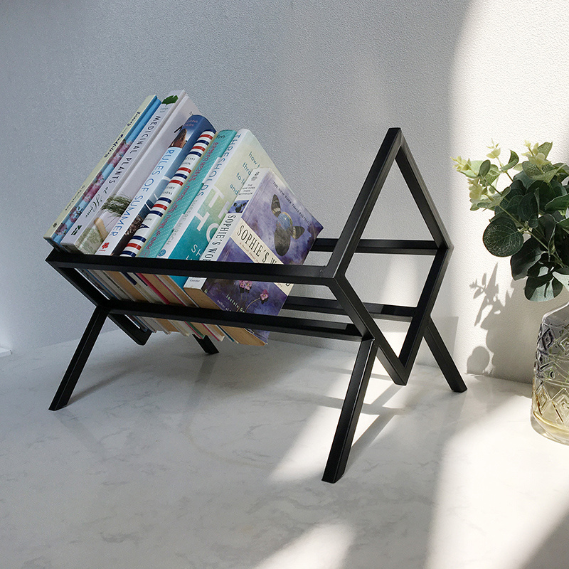 Stijlvol en modern design Geef je boekencollectie of platencollectie een upgrade met dit matzwarte metalen boekenrek. Het minimalistische ontwerp zorgt voor een elegante uitstraling in je interieur.
