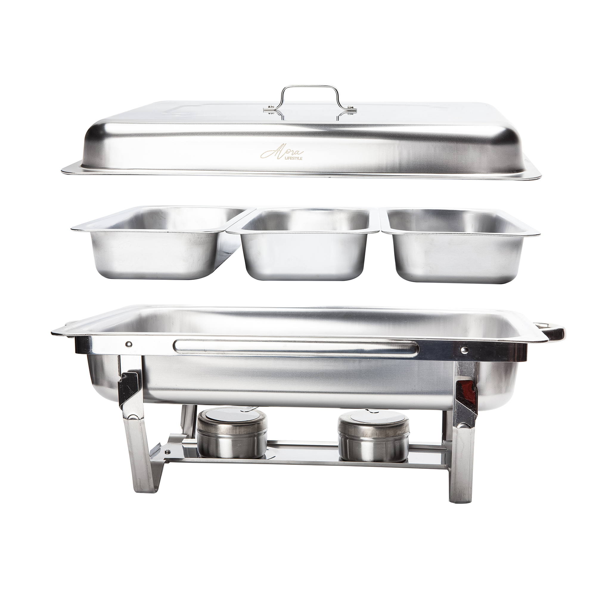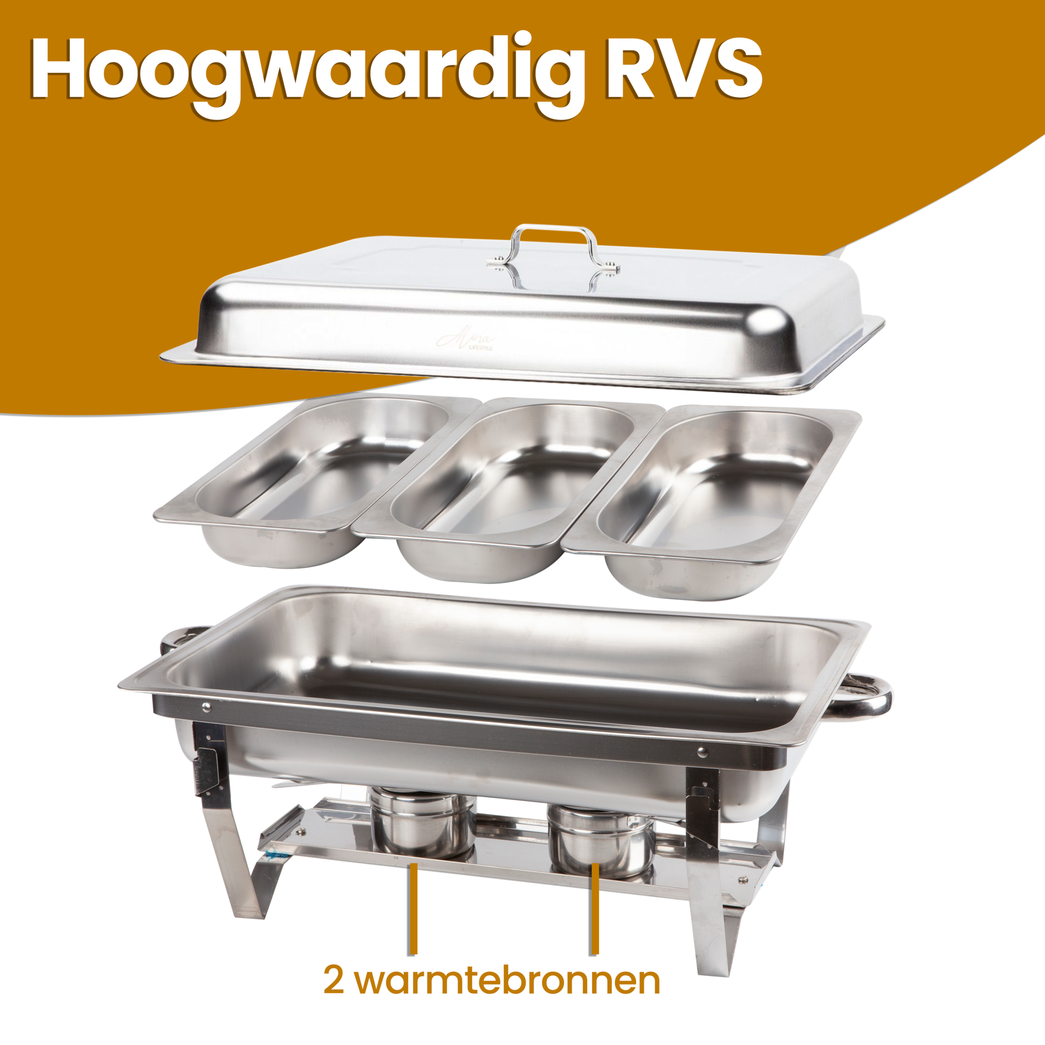 Op zoek naar een mooie chafing dish voor je buffet? De Alora Chafing Dish Chrome met drie bakken is de ideale keuze!
