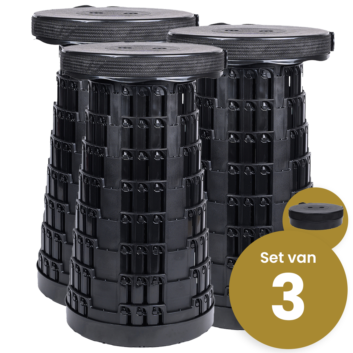 Alora Opvouwbare kruk extra strong zwart per 3