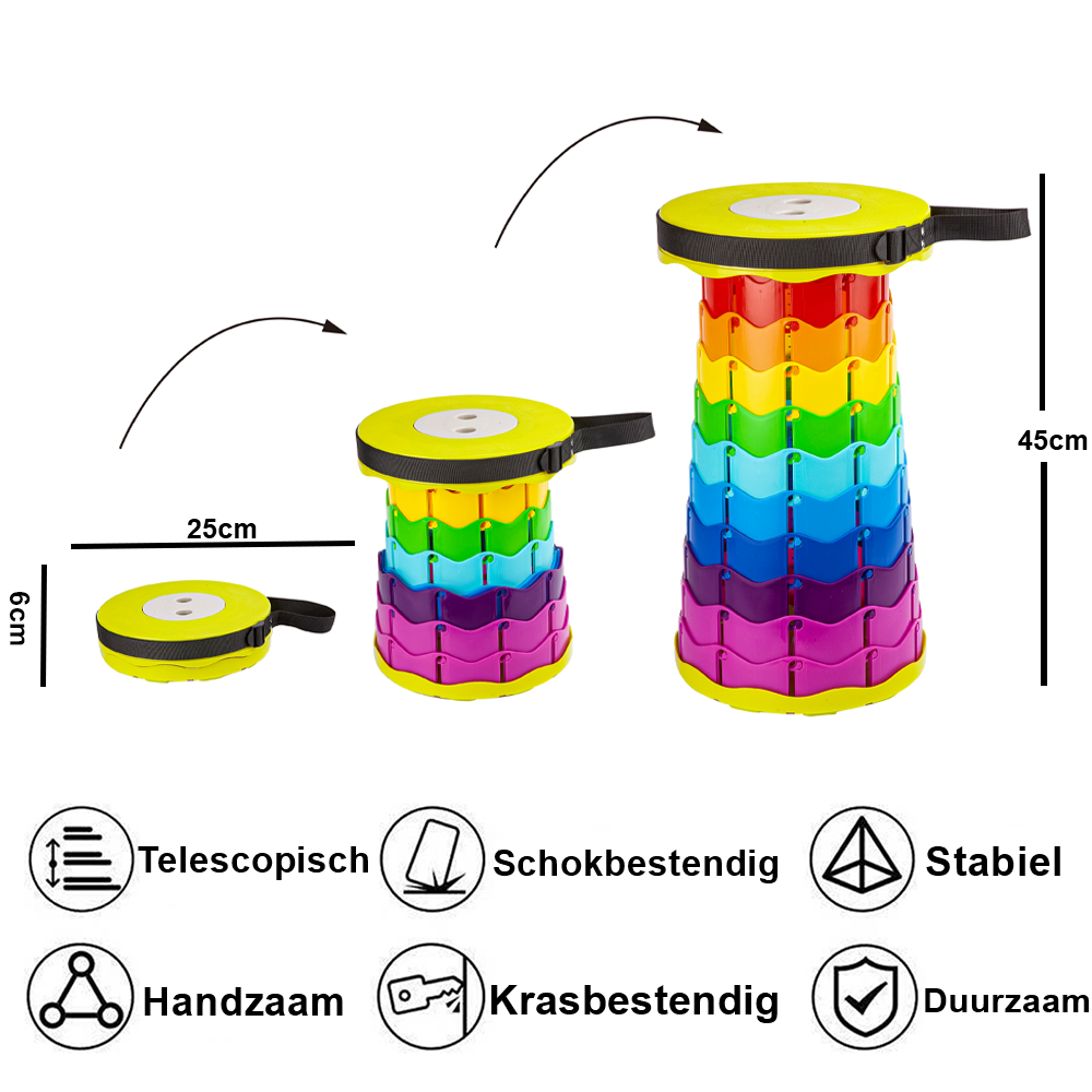 Ben jij opzoek naar een kruk die klein in formaat is? Dan zit je goed met de Alora Opvouwbare Kruk! Deze kruk is verstelbaar van 6cm tot 45cm, door dit ontwerp is het mogelijk om op hoogte te zitten maar ook om de stoel gemakkelijk op te bergen. Dankzij het lichte gewicht kun je de stoel gemakkelijk overal mee naartoe meenemen!