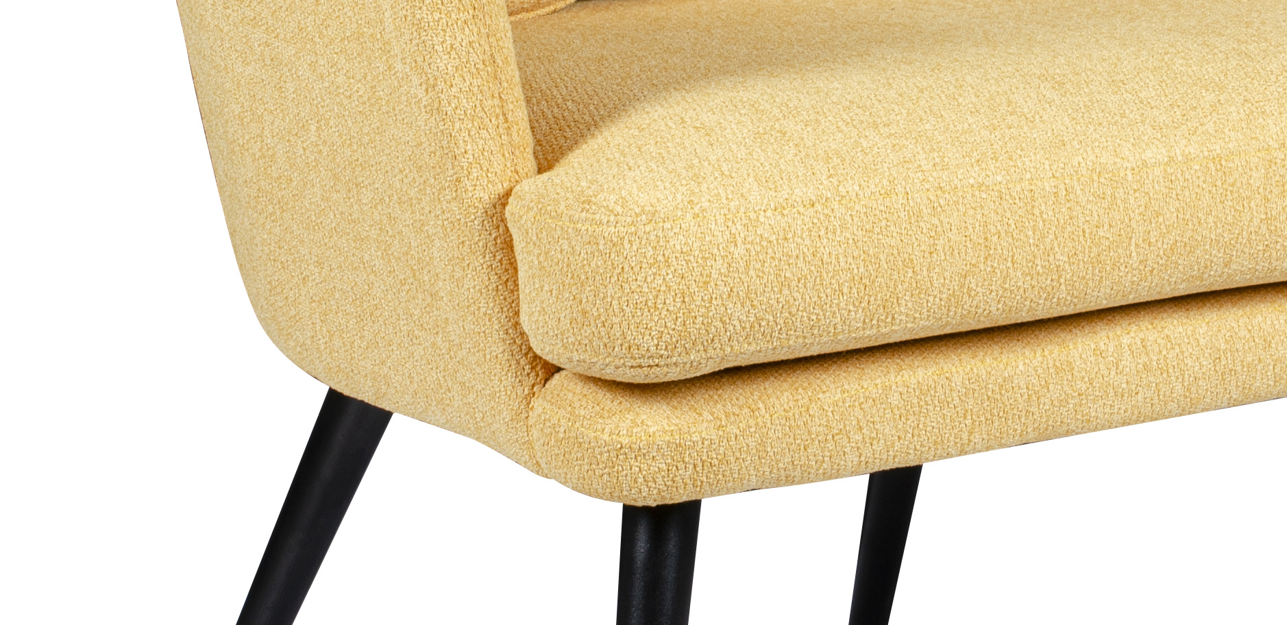 De elegante poten van de stoel Charlie Geel stof zijn gemaakt van zwart staal en de bekleding is van een mooie geel stof. De stoel heeft een comfortabele zithoogte van 44 cm en een ruim zitvlak van 74.5 cm x 57 cm. De stoel is in totaal 77 cm hoog en 60.5 cm breed. Ook wordt de stoel geleverd met een extra rugkussen voor extra comfort!.