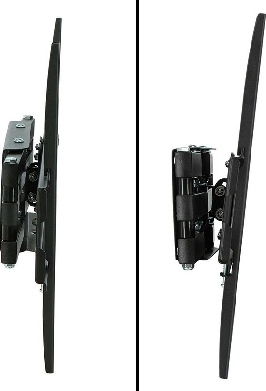 De meegeleverde schroeven en pluggen zijn geschikt voor montage op stenen of betonnen muren. Vanwege de sterke hefboomwerking is deze draaibare muurbeugel over het algemeen niet geschikt voor gipswanden of gasbeton. Voor dergelijke wanden raden we een tv-muurbeugel aan waarmee de televisie vlak tegen de muur wordt gemonteerd.