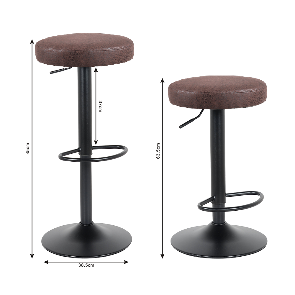 De barkruk is in hoogte verstelbaar met een zithoogte tussen de 63.5 cm en 85 cm. De afstand tussen de zitting en de voetsteun bedraagt 37 cm. De barkruk heeft een maximaal draaggewicht van 150kg.