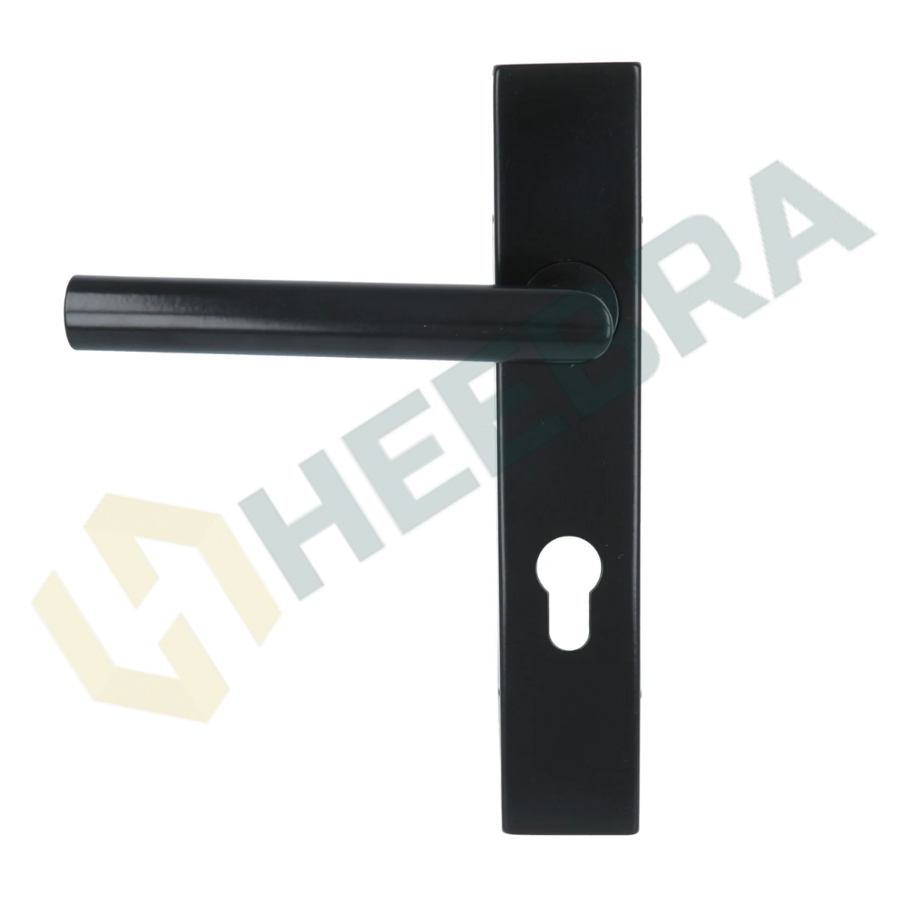 Deze complete zwarte set voor poortdeuren met PC72 slotsparing is ontworpen voor een stevige, veilige en stijlvolle afwerking van tuinpoorten of schuttingdeuren. De set bestaat uit hoogwaardige materialen met een sterke poedercoating op een RVS ondergrond, wat zorgt voor een moderne uitstraling en uitstekende weerbestendigheid.