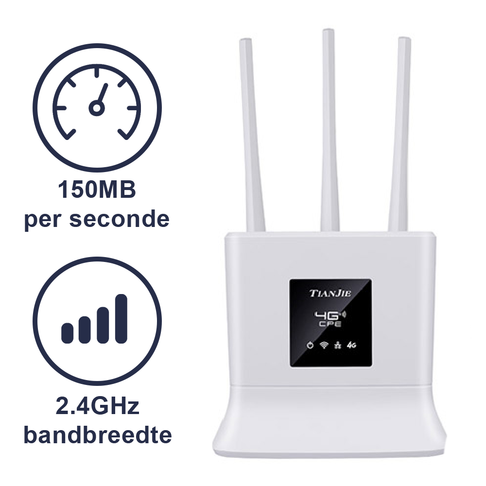 Geen voorbereiding, gewoon aansluiten! Met de draadloze 4G router met 3 ingebouwde antennes is je verbinding nog nooit zo snel geweest. Je hoeft er alleen een micro-simkaart in te steken en je bent klaar voor gebruik. Voor een zeer stabiele wifi verbinding met 4G router ben je op de juiste plek.