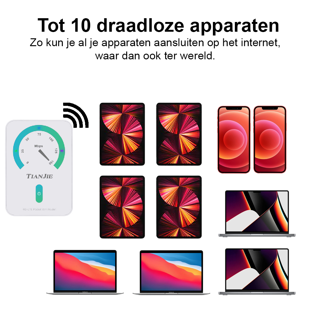 Deze MiFi router is Ideaal op reis, vakantie, camping, strand, boot en op elke andere plek waar geen WiFi is! De router is bedoeld voor iedereen die een trage internetverbinding zat is en graag wil genieten van een veilige en snelle internetverbinding.