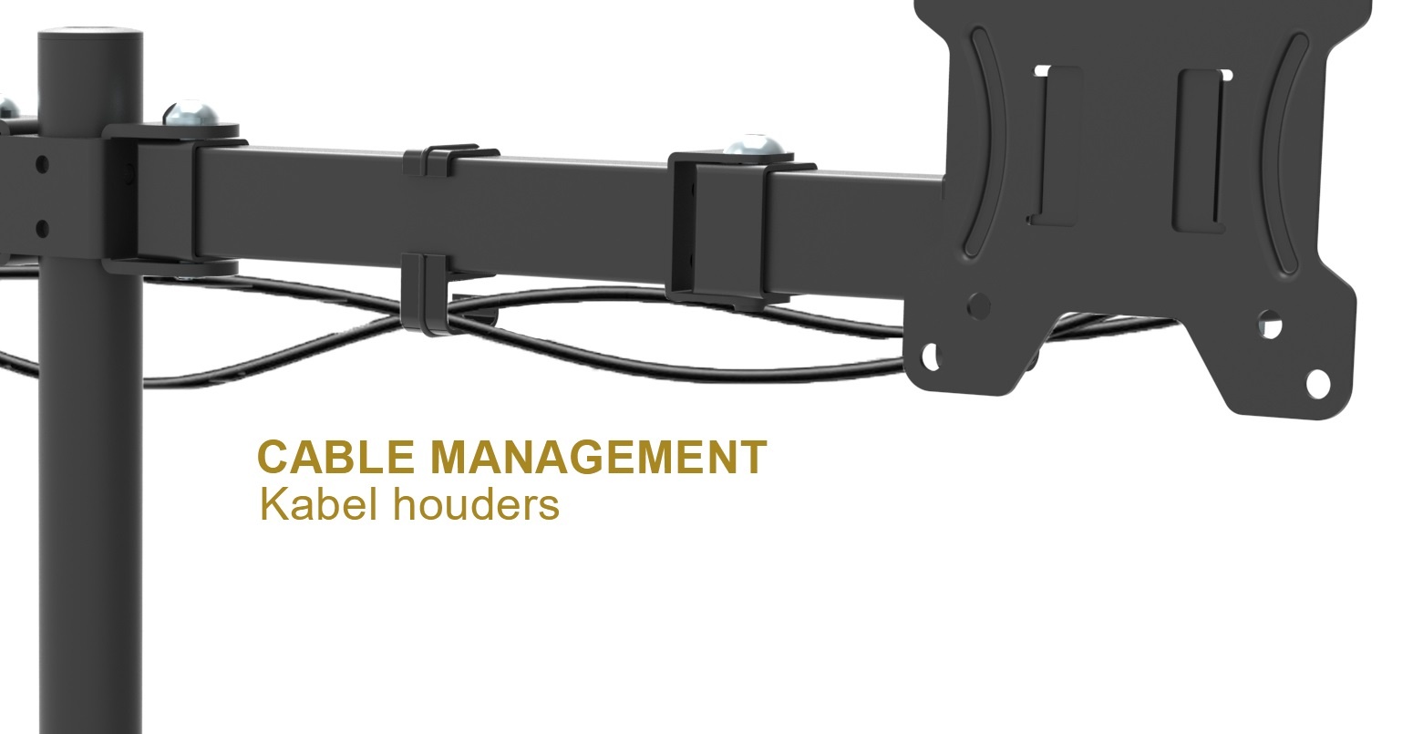 Dankzij het slimme ontwerp kun je de schermen draaien (360°), zwenken (180°) en kantelen (125°) – precies zoals jij het prettig vindt. Of je nu in portret- of landschapsmodus werkt, je stelt het in met een paar simpele bewegingen. Het stevige stalen frame zorgt ervoor dat alles stabiel blijft staan, zelfs bij intensief gebruik.