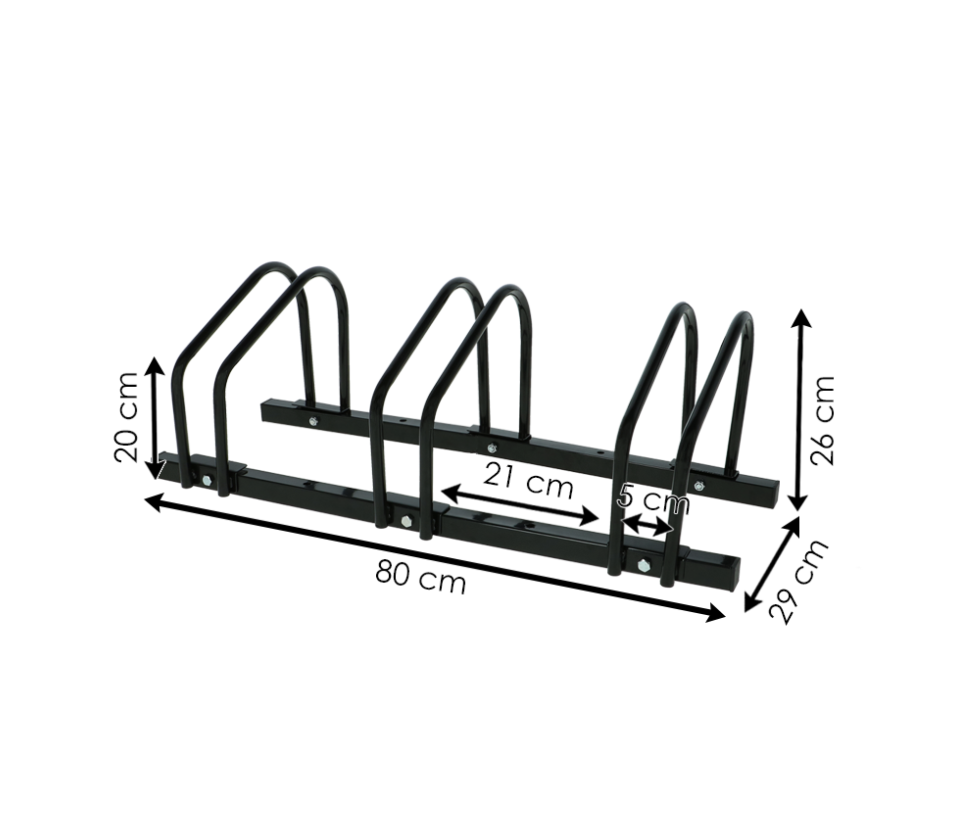 Wil je meerdere fietsen netjes kwijt, maar heb je beperkte ruimte? Het Alora fietsenrek voor 3 fietsen is de perfecte oplossing. Gemaakt van sterk zwart gepoedercoat staal, en geschikt voor fietsen met een maximale banddikte van circa 6,5 cm. Dankzij de afstand van 25 cm tussen de beugels voorkom je verstrikte sturen of in de knoop geraakte kabels.