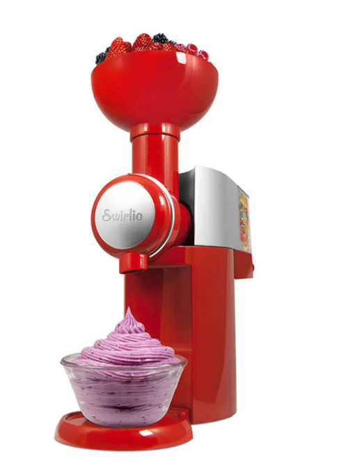 Stop je kleine stukjes bevroren fruit in de machine en binnen no-time heb je heerlijk vers ijs, perfect voor een warme zomerdag! De ijsmachine is ook uiterst geschikt voor het maken van Frozen Yoghurt.