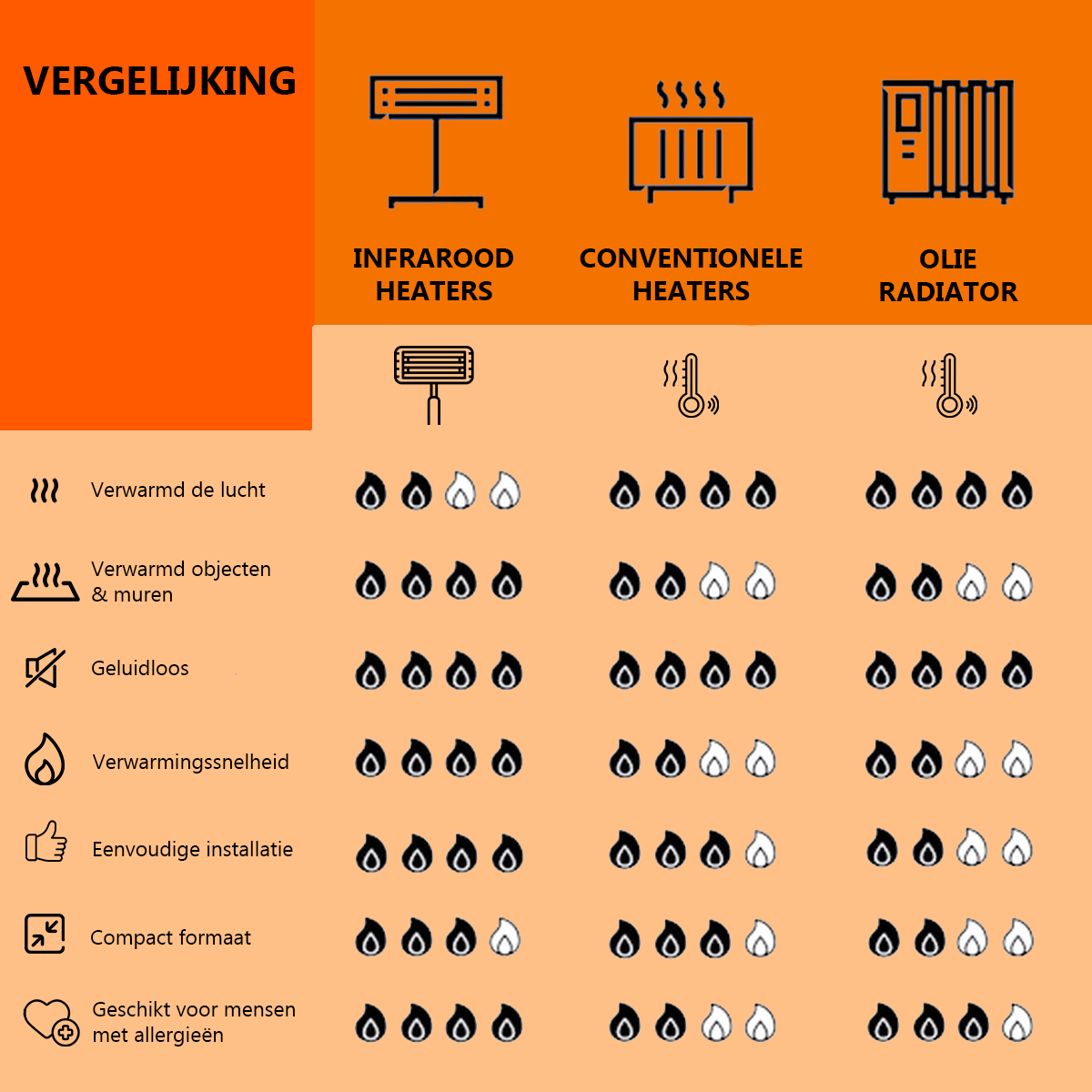 - LEVERING – De heater wordt geleverd incl. kabel en stekker. Dit product is geschikt voor ruimten met goede isolatie-eigenschappen.