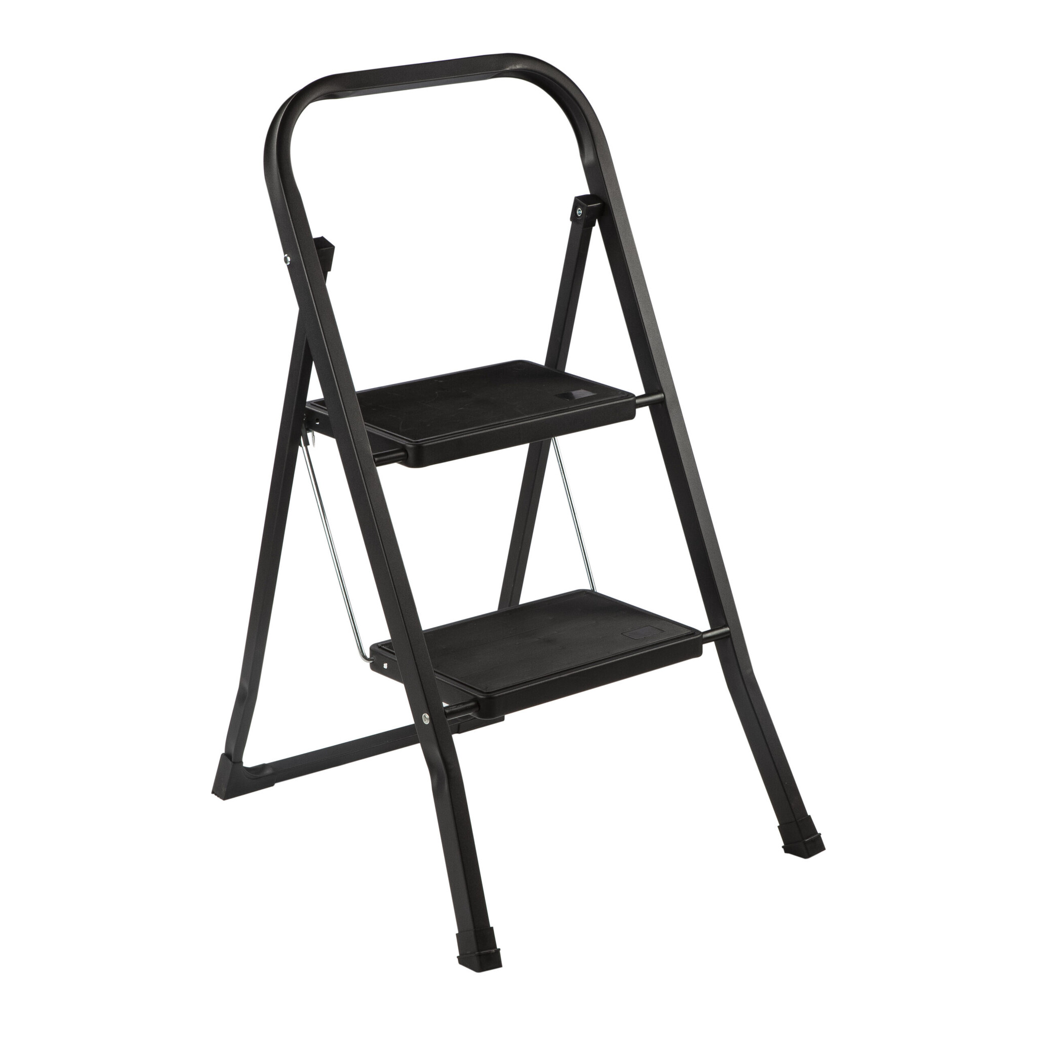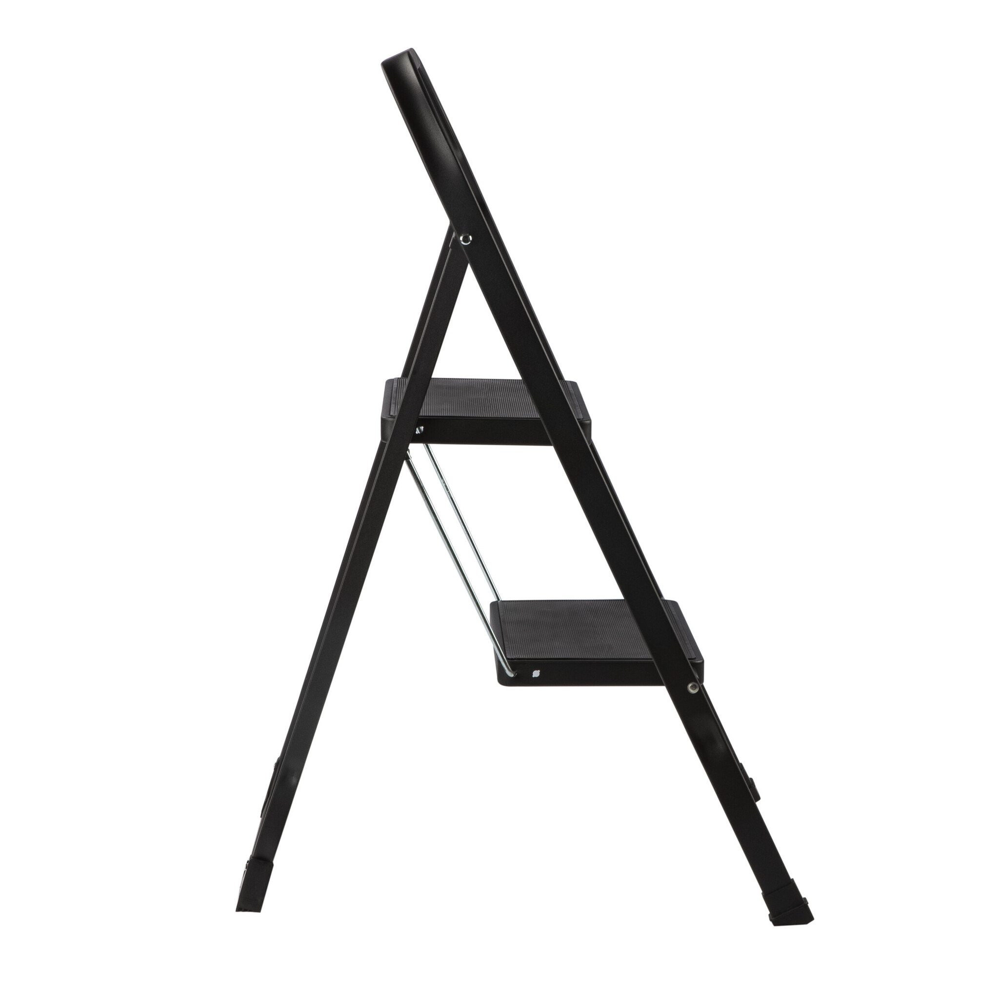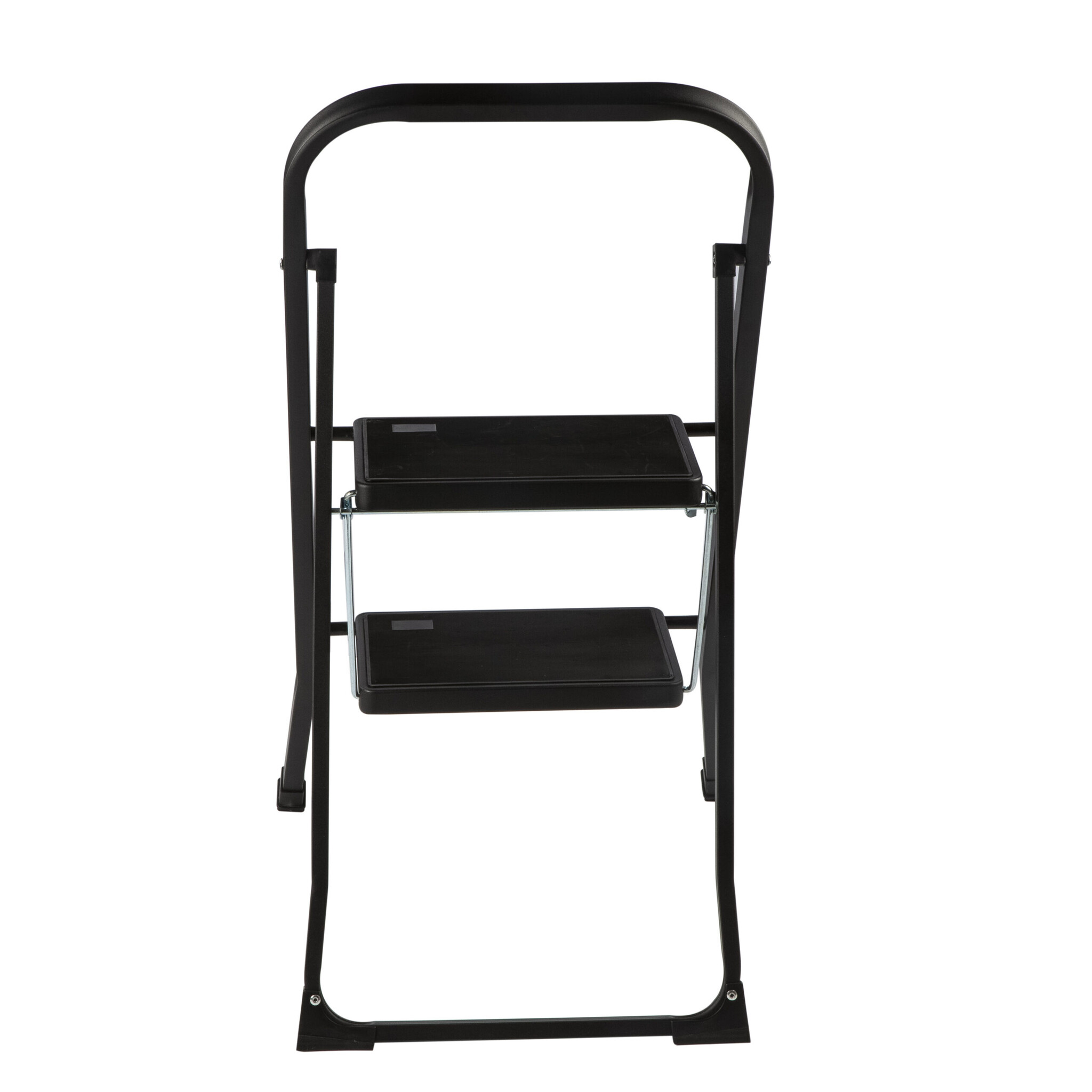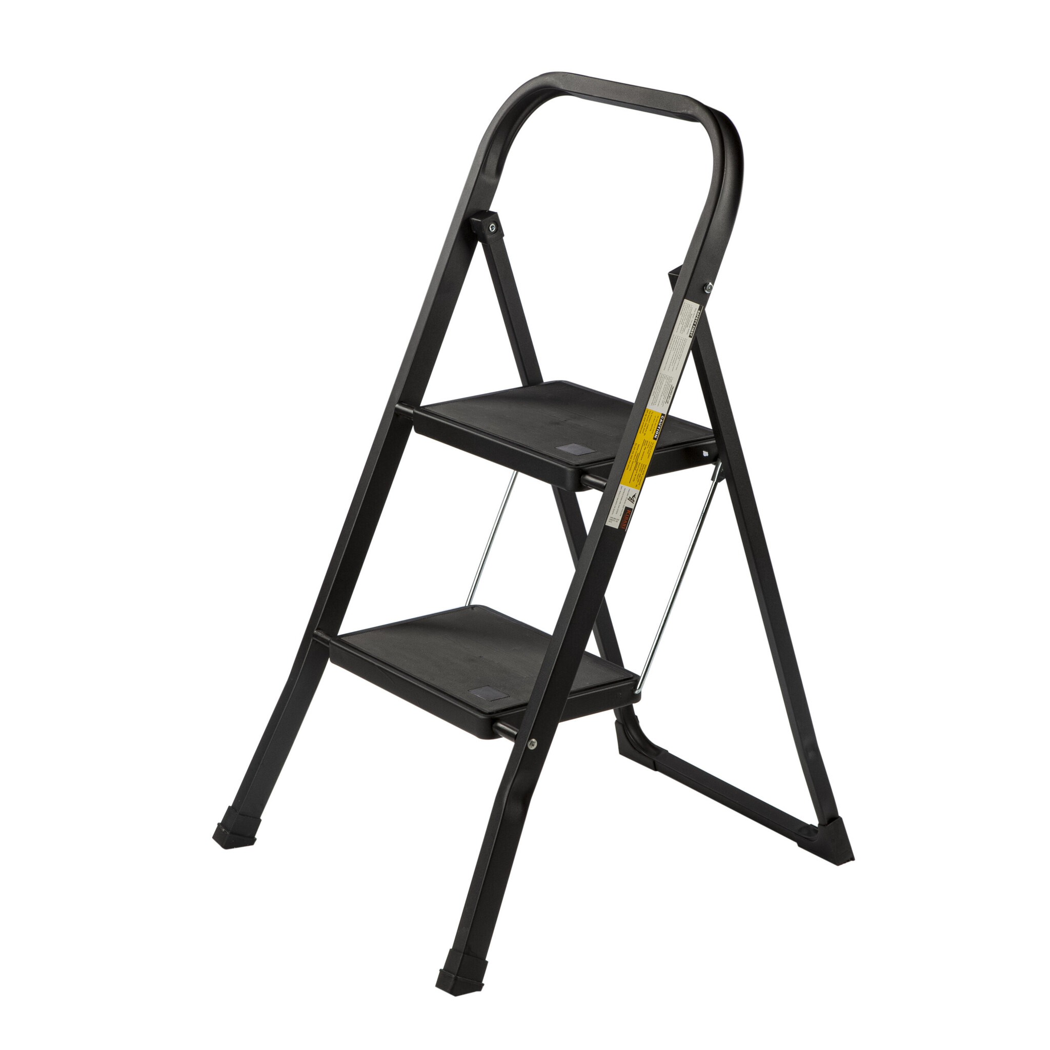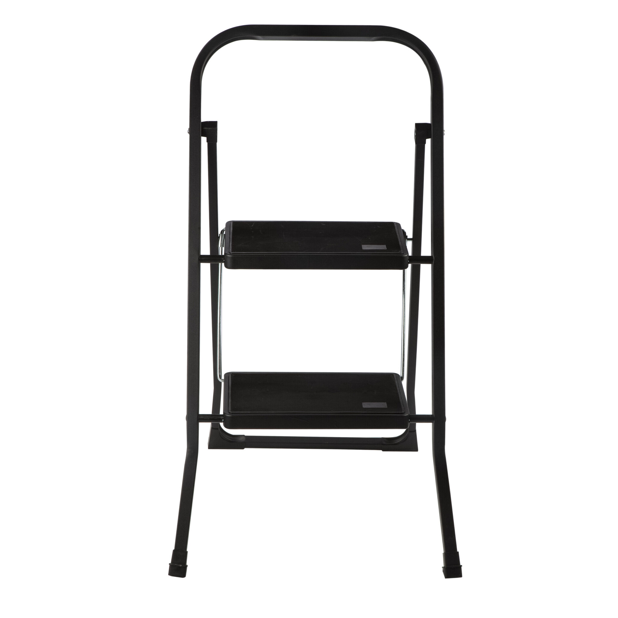 De keukentrap is inklapbaar met 2 zwarte treden. De bovenste treden heeft een hoogte van 47 cm. De trap is inklapbaar en heeft een gewicht van 3.8kg. De keukentrap is voorzien van anti-slip poten en antislipbekleding op de treden. Het maximale draagvermogen van de keukentrap is 150kg.
