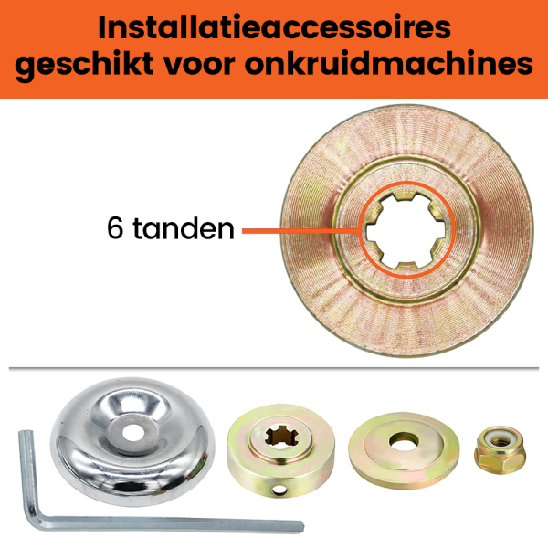 Met deze Kibani bevestigingsset monteer je gemakkelijk diverse opzetstukken voor jouw bosmaaier. Vaak worden bosmaaiers geleverd zonder bevestigingsset, zo kun je de opzetstukken niet direct monteren. Deze bevestigingsset is speciaal hiervoor ontworpen en wordt ook geleverd met een inbussleutel. Met deze set kun jij direct van start gaan en monteer je gemakkelijk al jouw diverse opzetstukken!