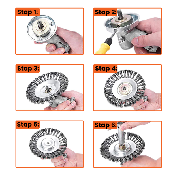 Zorg ervoor dat je bosmaaier na het bevestigen van de opzetstuk goed in balans is, en het opzetstuk zich net boven de grond bevindt wanneer de machine los over je schouder hangt. Dit doe je door de draagriem te verstellen. Houd tijdens het gebruik een onkruidborstel de borstel iets naar links, in een hoek van 5 tot 10 graden. Je kunt het jezelf makkelijk maken door de as waarop het opzetstuk bevestigd is iets naar links te kantelen met behulp van een inbussleutel.