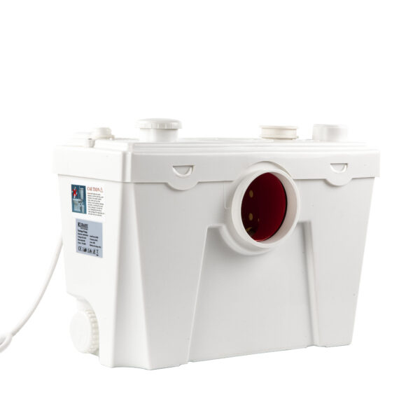 Laag geluidsniveau! Slechts 35~45 dB! Blade Cut systeem voor het weggooien van tampons! Compacte afmetingen! Twee compartimenten voor gemakkelijke toegang in geval van verstopping en onderhoud van de pomp Terugslagklep en stalen slangklemmen inbegrepen Vrijwel probleemloze pomp! Gebruikte watertemperatuur tot 80 °C