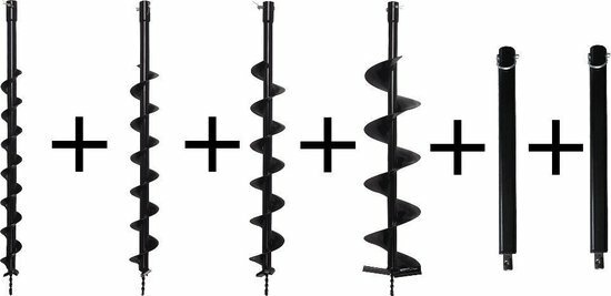 Kibani® grondborenset met 4 grondboren (60, 80, 100 mm en 150 mm) en twee een praktische verlengstukken om de boor met 1 meter te verlengen. De set is te gebruiken in combinatie met grondboren met een aansluiting van ⌀20 mm.