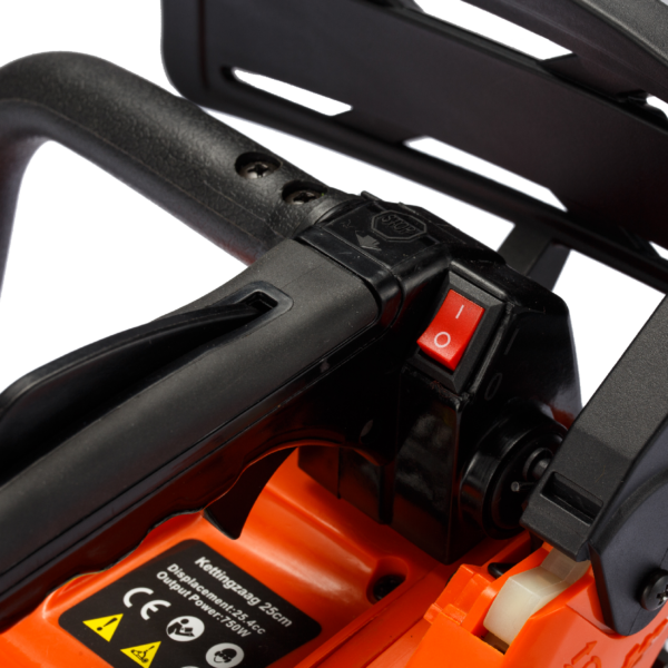 De automatische kettingsmering garandeert een goede werking van de kettingzaag. Door middel van een stelschroef is de olietoevoer eenvoudig in te stellen. De kettingzaag is bovendien voorzien van een kettingremsysteem waardoor de motor stilvalt wanneer er terugslag plaatsvindt. Zo kun je veiliger met de kettingzaag werken. Dankzij het softgrip handvat ligt de kettingzaag comfortabel in de hand.