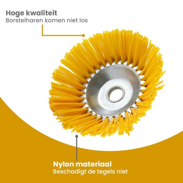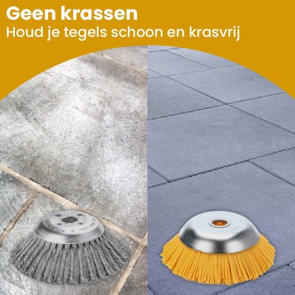 In plaats van stalen draden heeft deze onkruidborstel nylon borstelharen. Dankzij dit materiaal beschadig je je stoep, oprit en tuinbestrating niet. Na gebruik bevatten de tegels geen krassen van het stalen draad. Houd je tuintegels en stoep netjes met de Kibani nylon onkruidborstel!