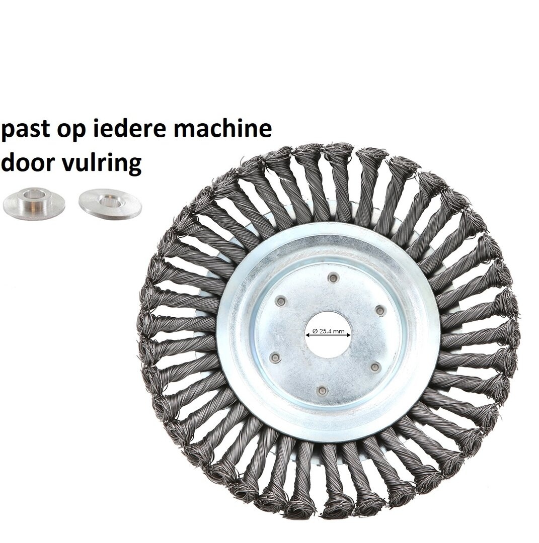 Wist je dat je je bosmaaier en combitool ook kunt gebruiken om je stoep, oprit of tuinbestrating er razendsnel piekfijn uit te laten zien? Het gedraaide staaldraad van de borstel verwijdert moeiteloos al het onkruid – je hebt dus geen schadelijk gif meer nodig! De borstel heeft een diameter van 15 cm en is geschikt voor alle machines door het gebruik van de meegeleverde vulring. De borstel is geschikt voor bosmaaiers/multitools met een vermogen vanaf 33cc/1.36pk/1.0kw. De borstel werkt het beste met een vermogen boven 33cc/1.36pk/1.0kw.