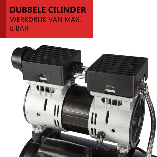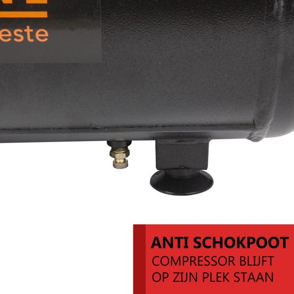 Deze compressor is voorzien van eentankdrukmeter, drukregelaar, druk-regelaarmeter en een orion/eu snelkoppeling waardoor luchtgereedschap gemakkelijk is aan te sluiten! Deze stille compressor is olievrij en heeft dus een extra lange levensduur.