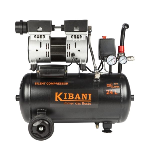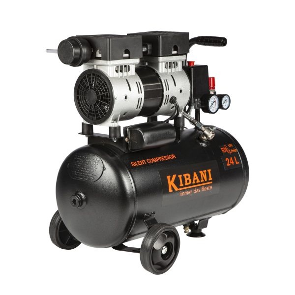Deze olievrije en compacte Kibani compressor is licht in gewicht en fluisterstil (62) dB. Met een tankinhoud van 24 Ltr. levert deze compressor 190L/min. met 8 bar druk. De compressor heeft een stille pomp en is binnenshuis te gebruiken, bij het gebruik van verschillende soorten perslucht gereedschappen welke geen continue luchtstroom nodig hebben, zoals tackers, nagel & spijkerapparatuur en oppompen van autobanden maar ook zeer geschikt voor een schoonheidssalon/ nagelstudio en het airbrushen.