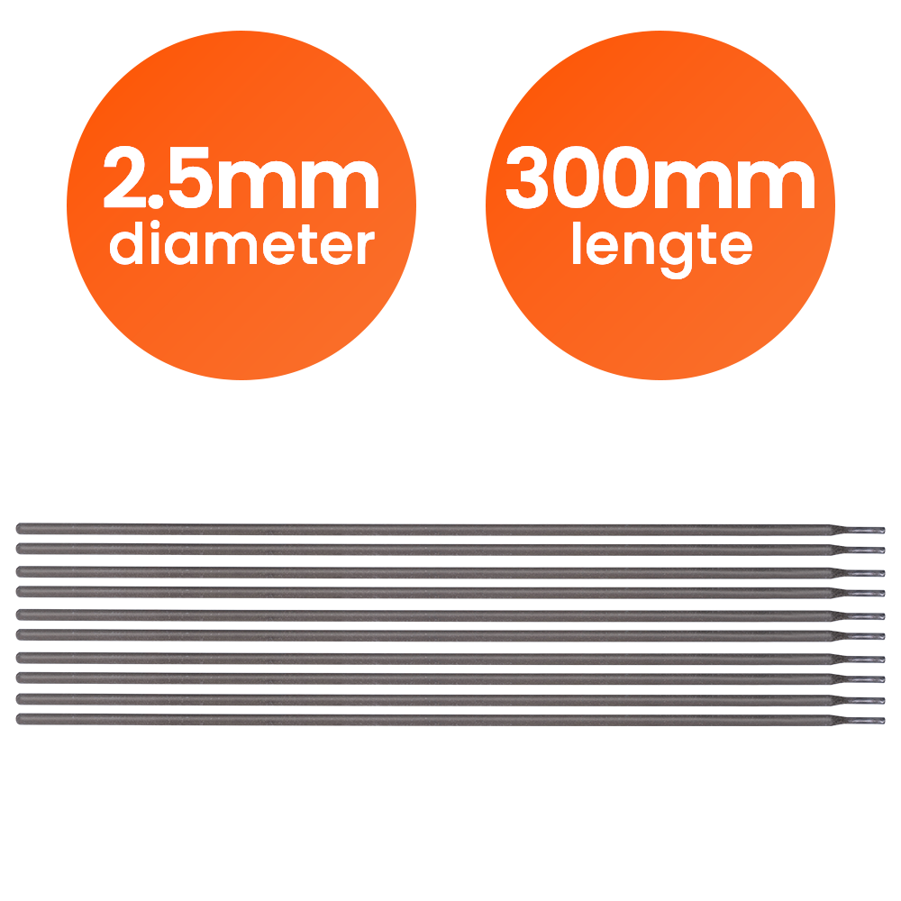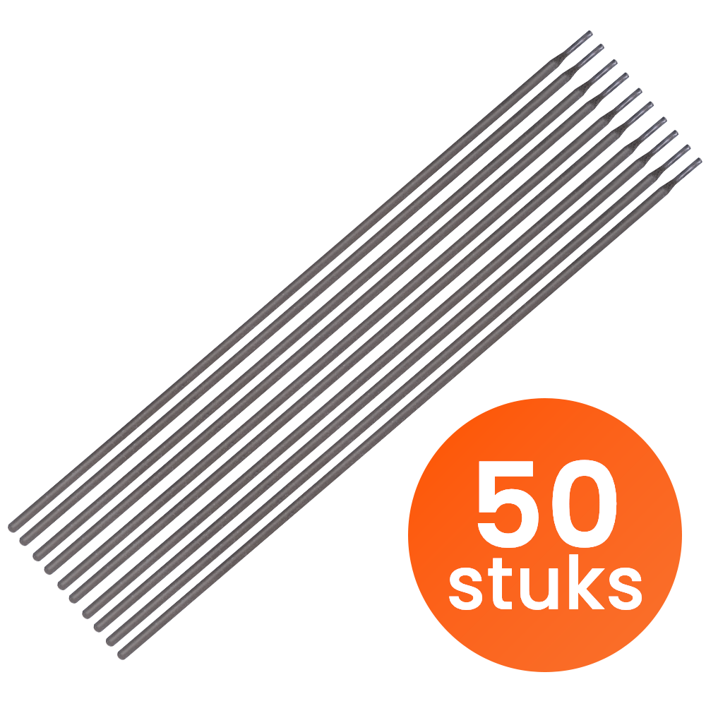 50 stuks in één set Je ontvangt een complete set met 50 elektroden van elk 2,5 mm dik en 300 mm lang. Dankzij deze royale hoeveelheid kun je langdurig vooruit met je lasprojecten zonder telkens bij te moeten bestellen.