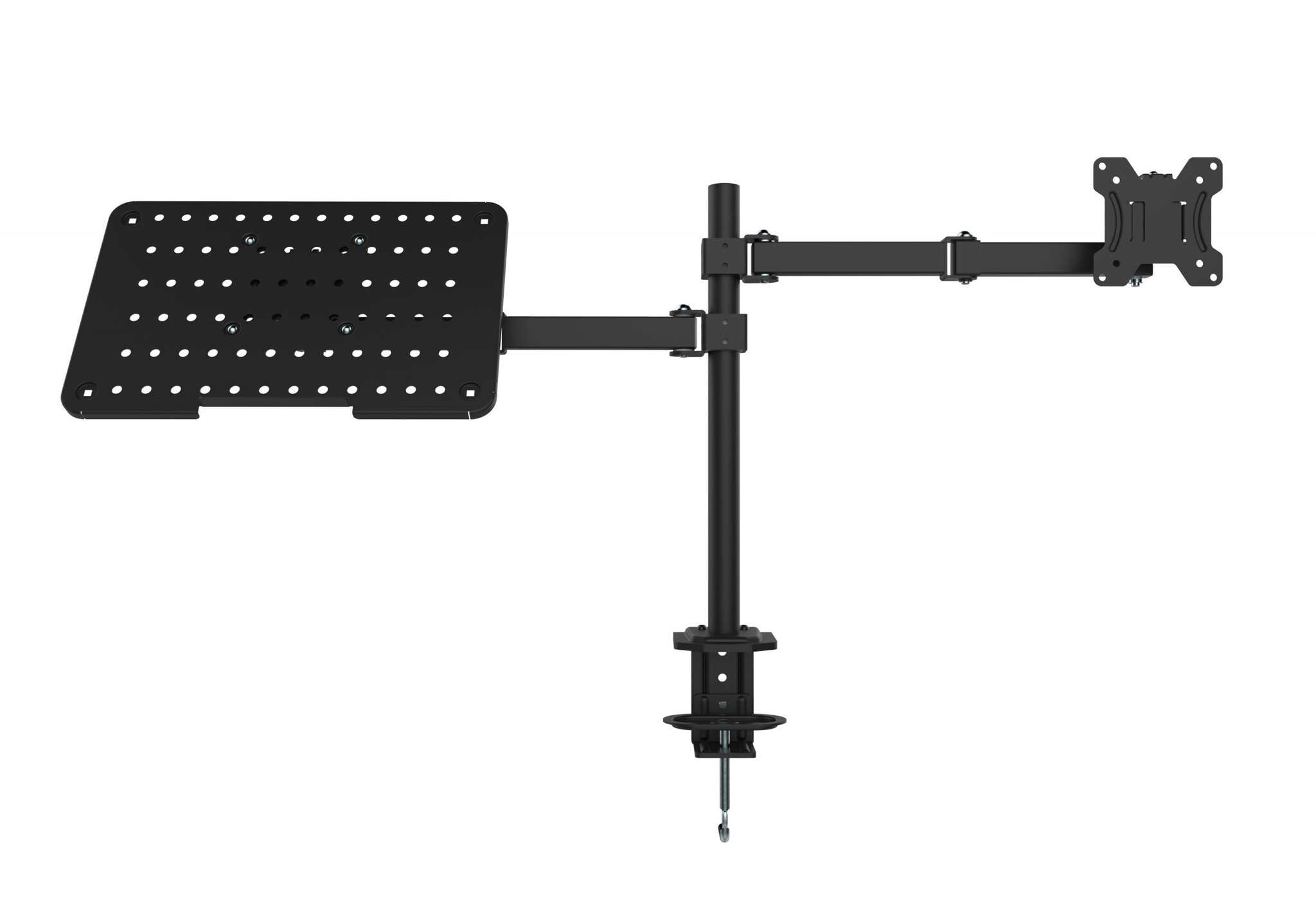 Beide monitorarmen beschikken over 2x een VESA 75x75 / 100x100 mm bevestigingsplaat. Hieraan bevestig je 1 of 2 beeldschermen van 13-27 inch. Je kunt de laptopstandaard bevestigen aan een van de twee monitorarmen. Als je de laptopstandaard niet gebruikt, kun je dus zelfs twee beeldschermen aansluiten.