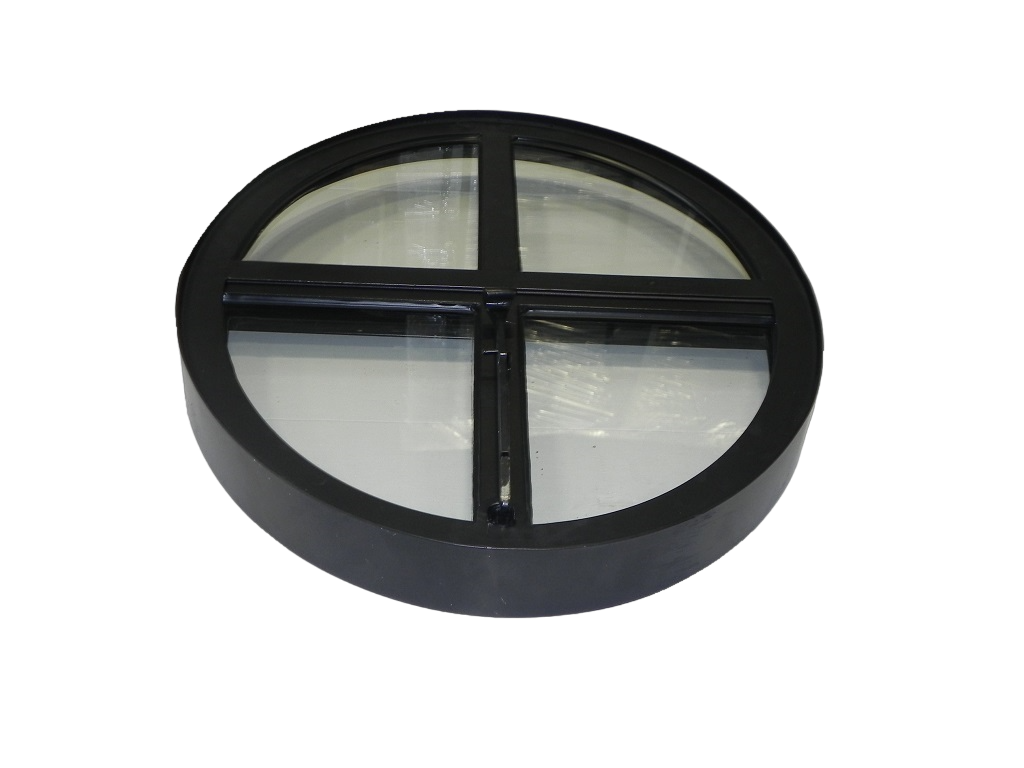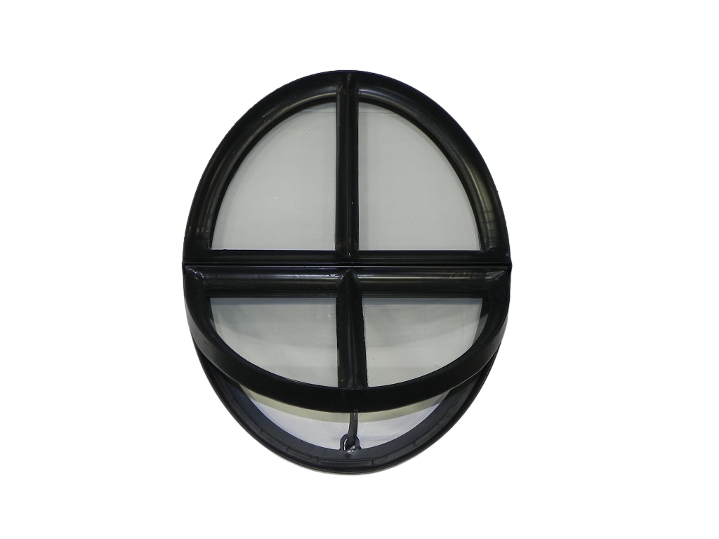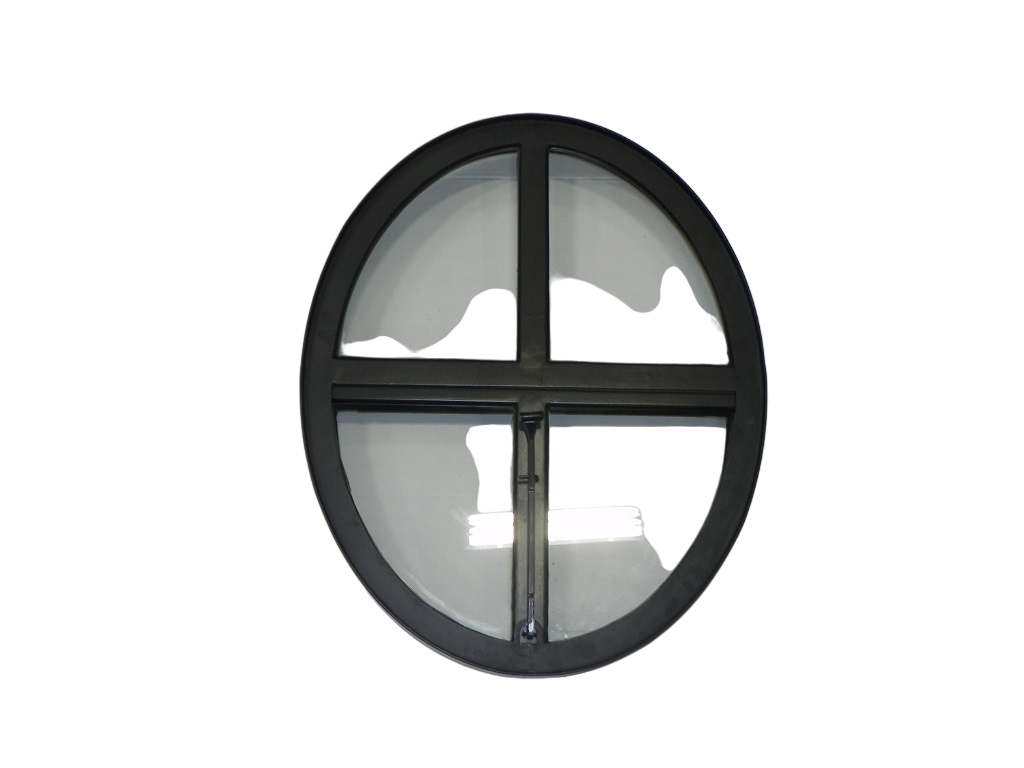 De zwarte structuurcoating na verzinken geeft het raam een strakke en moderne afwerking en beschermt het tegen roest en slijtage, waardoor het jarenlang zijn stijlvolle uitstraling behoudt. Het openklapbare ontwerp combineert functionaliteit met tijdloze elegantie en maakt dit ossenoog zowel praktisch als decoratief.