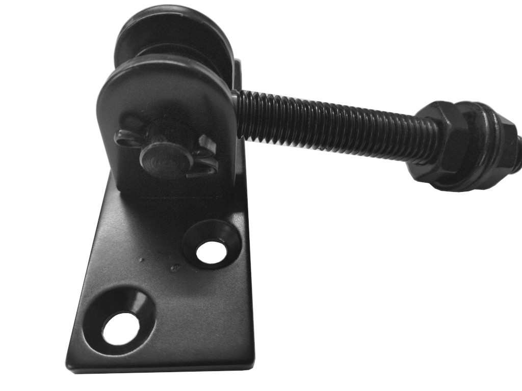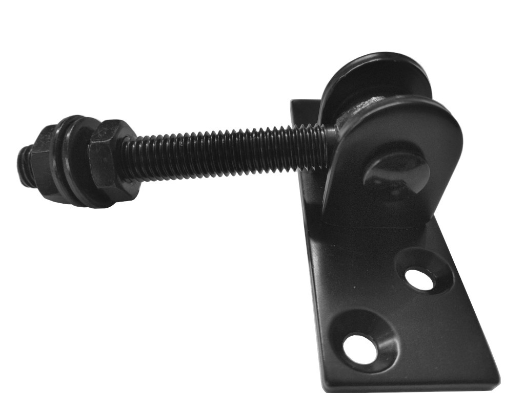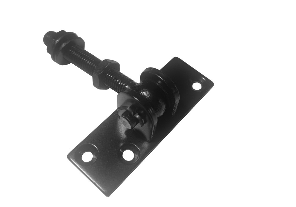Deze verstelbare plaat met draadstang is een essentieel onderdeel voor het bevestigen van poorten en frames. De plaat heeft afmetingen van 120x40x5mm en is uitgevoerd in een elegante zwarte gepoedercoating, wat zorgt voor een moderne uitstraling en bescherming tegen corrosie.