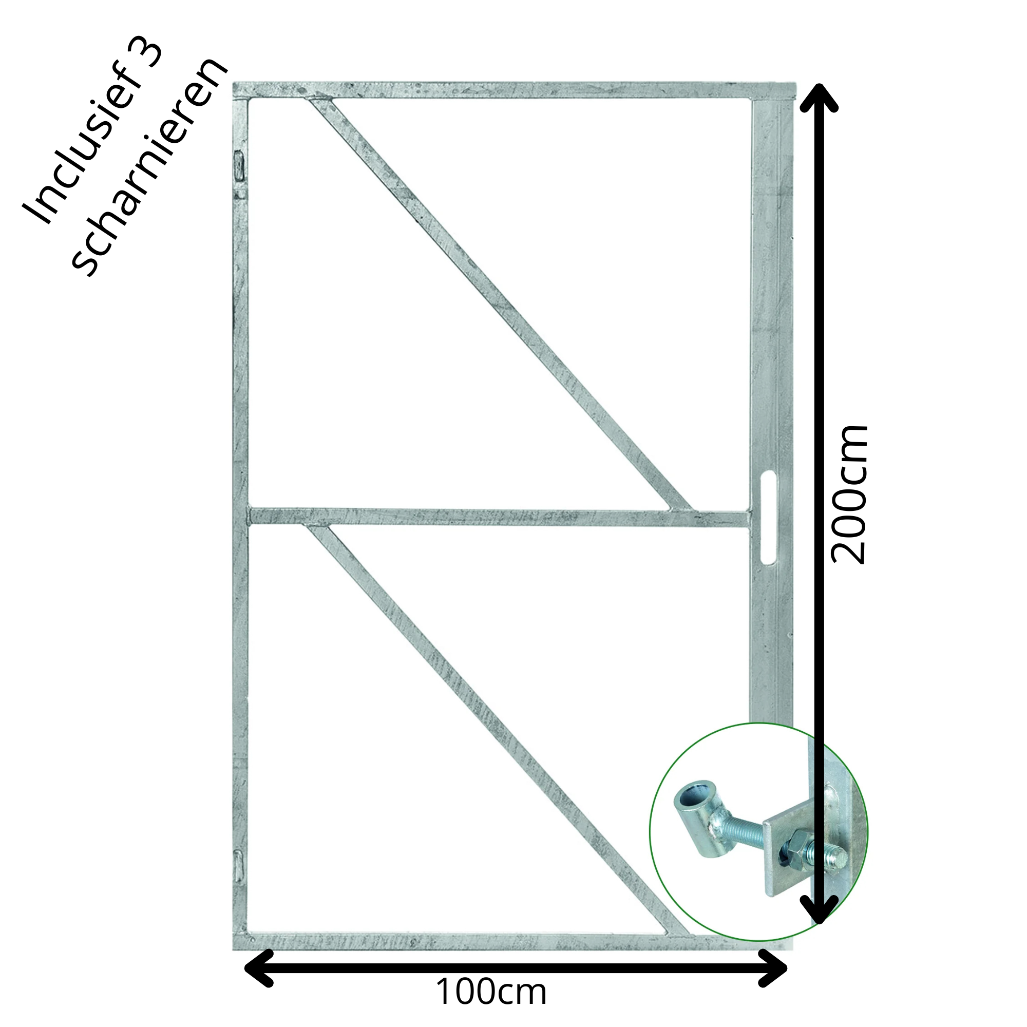 Poortframe 200x100cm met slotkast 2 stelscharnieren