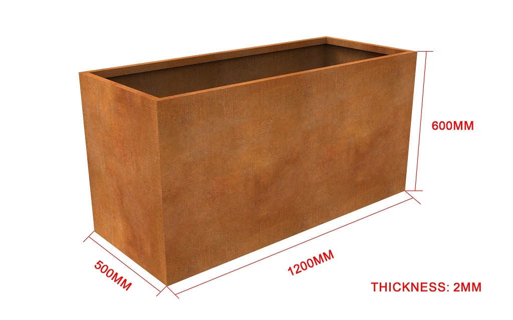 De Rechthoekige Plantenbak 500x1200x600 mm is een robuuste en stijlvolle plantenbak die perfect past in zowel moderne als natuurlijke tuinen. Gemaakt van duurzaam cortenstaal dat na verloop van tijd een warme roestkleur ontwikkelt. Deze natuurlijke oxidatielaag beschermt het materiaal tegen doorroesten en maakt de plantenbak onderhoudsvrij.