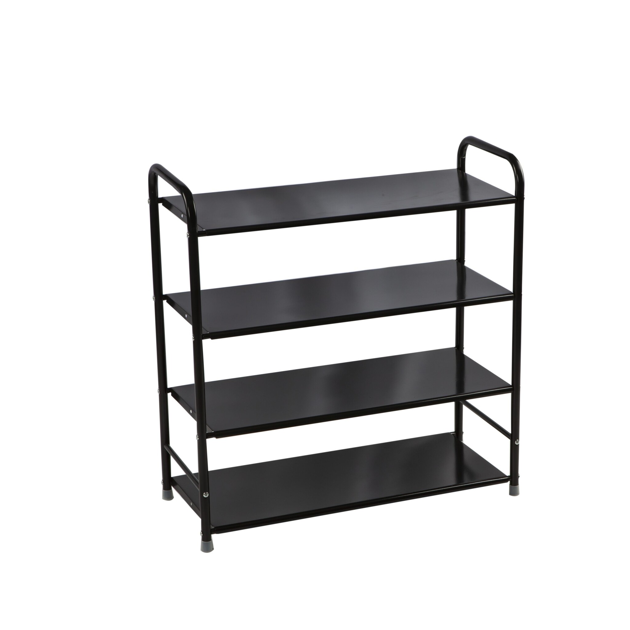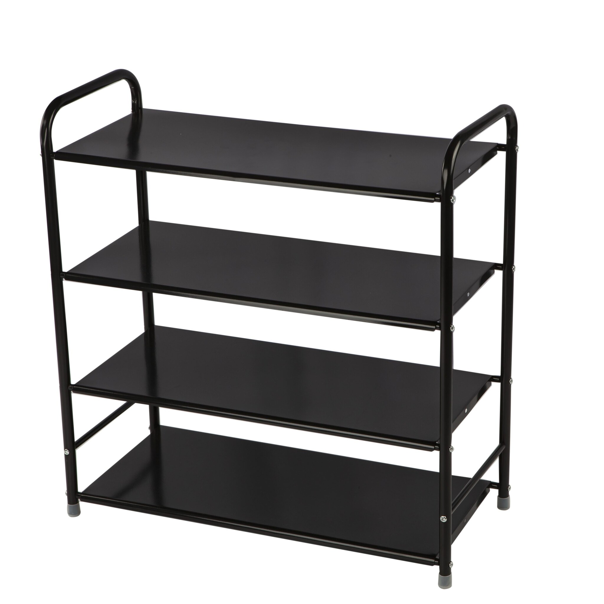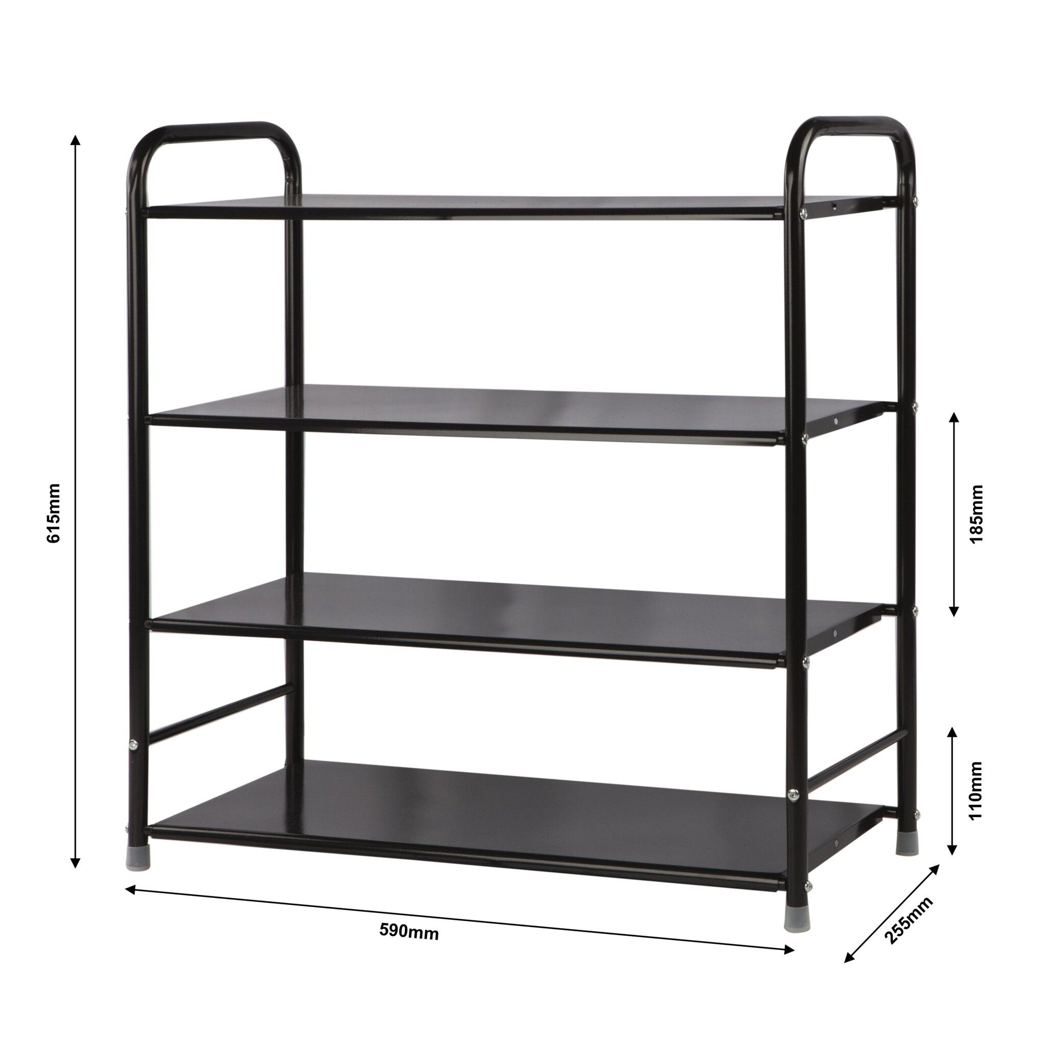 Ben je ook helemaal klaar met rondslingerende schoenen en wil je ze netjes en georganiseerd opbergen? Dan is het stijlvolle Schoenen opbergrek zwart hét perfecte product voor jou! Door zijn strakke en stijlvolle design past deze in elk huis en met maar liefst 4 opbergplanken kun je tot wel 15 paar schoenen kwijt!