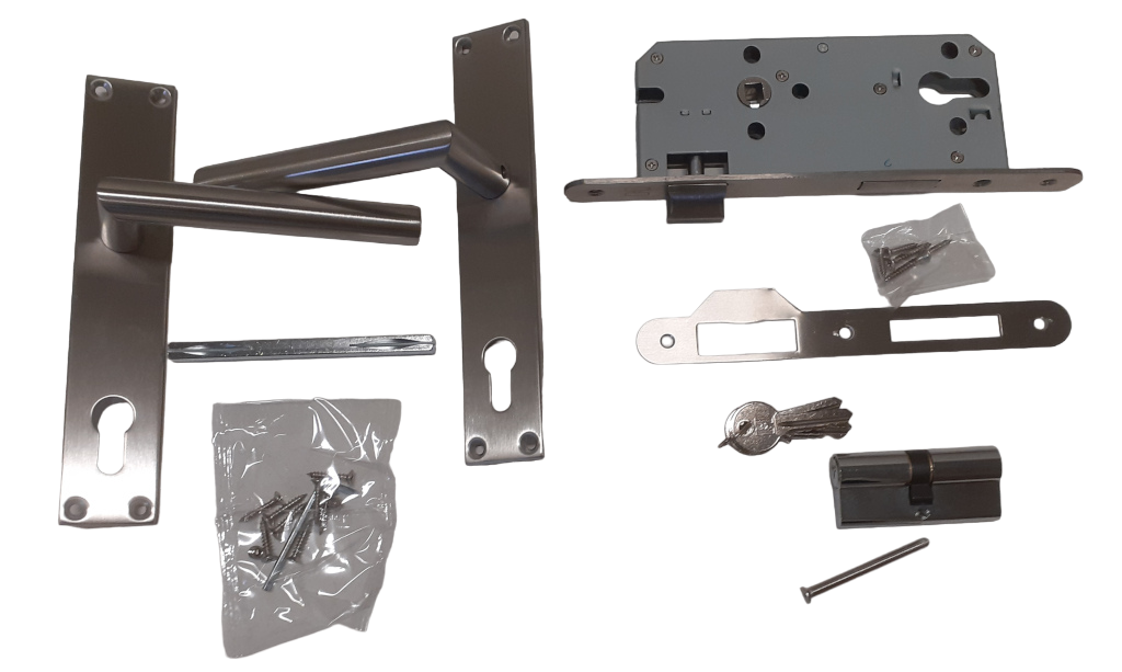 Deze robuuste set voor tuindeuren is geschikt voor zowel links- als rechtshangende deuren. De set bevat een cilinder van 35x35 mm met drie sleutels voor optimale beveiliging. Het RVS deurschild en de rechte deurkruk bieden een stijlvolle en duurzame afwerking. De slotkast heeft een afmeting van 74x170 mm, met een doornmaat van 45 mm en een PC-maat van 85 mm. De dubbele nachtstoot zorgt voor extra stabiliteit en veiligheid, waardoor deze set een betrouwbare keuze is voor uw tuindeuren.
