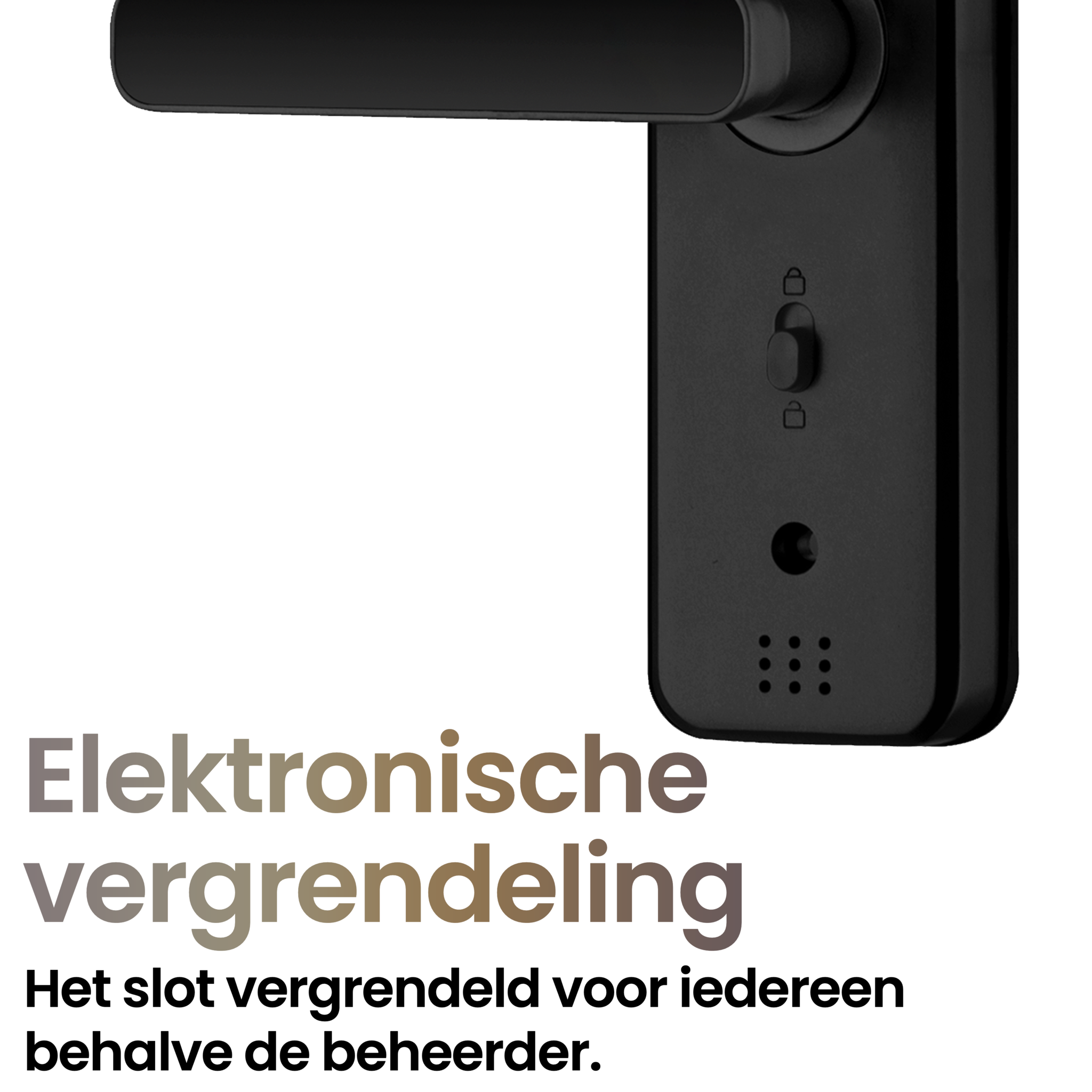 Met de fysieke schuifknop op het slot (gericht naar binnen), kan er een elektronische vergrendeling worden ingesteld. Het slot kan dan enkel nog elektronisch worden opengemaakt door de 'Administrator'-gebruiker die in de app gekoppeld staat. Andere gebruikers kunnen het slot niet meer openen.