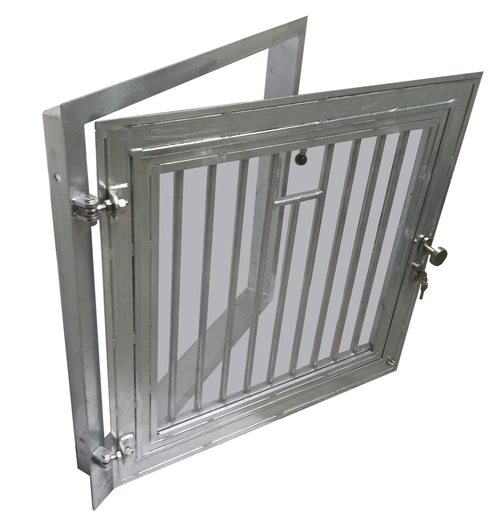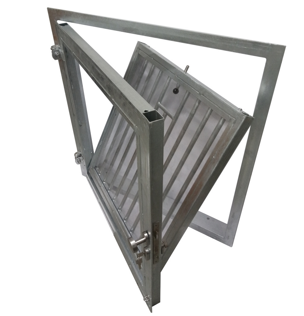 Het kantelbare stalraam van Heebra heeft een afmeting van 1000x1000 mm en is uitgerust met verwijderbare ronde roosters en een transparant 8 mm PC-paneel voor flexibiliteit en lichtdoorlatendheid. Het frame is vervaardigd van vuurverzinkt hoekstaal met afmetingen van 100x50x5.0 mm, wat zorgt voor stevigheid en duurzaamheid, zelfs onder veeleisende omstandigheden. Dit stalraam is ontworpen als een links model en heeft verstelbare RVS 304 scharnieren, haken en grendels voor gemakkelijke bediening en aanpassing. Deze combinatie van materialen en functies maakt het ideaal voor diverse staltoepassingen waar flexibiliteit, duurzaamheid en gebruiksgemak vereist zijn.