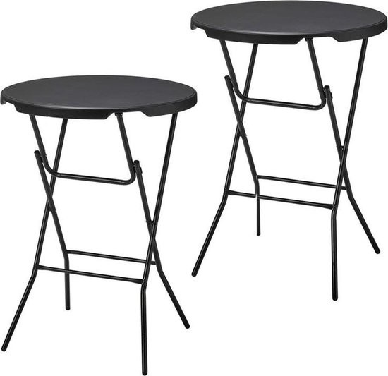 De statafels zijn voorzien van een zwart kunststof tafelblad met een diameter van 80 centimeter. De tafel biedt daardoor ruimte voor ten minste 5 personen. Het stevige stalen frame van de statafel is eenvoudig in te klappen. Ingeklapt is de statafel volledig plat, waardoor je deze gemakkelijk kunt opbergen en vervoeren.