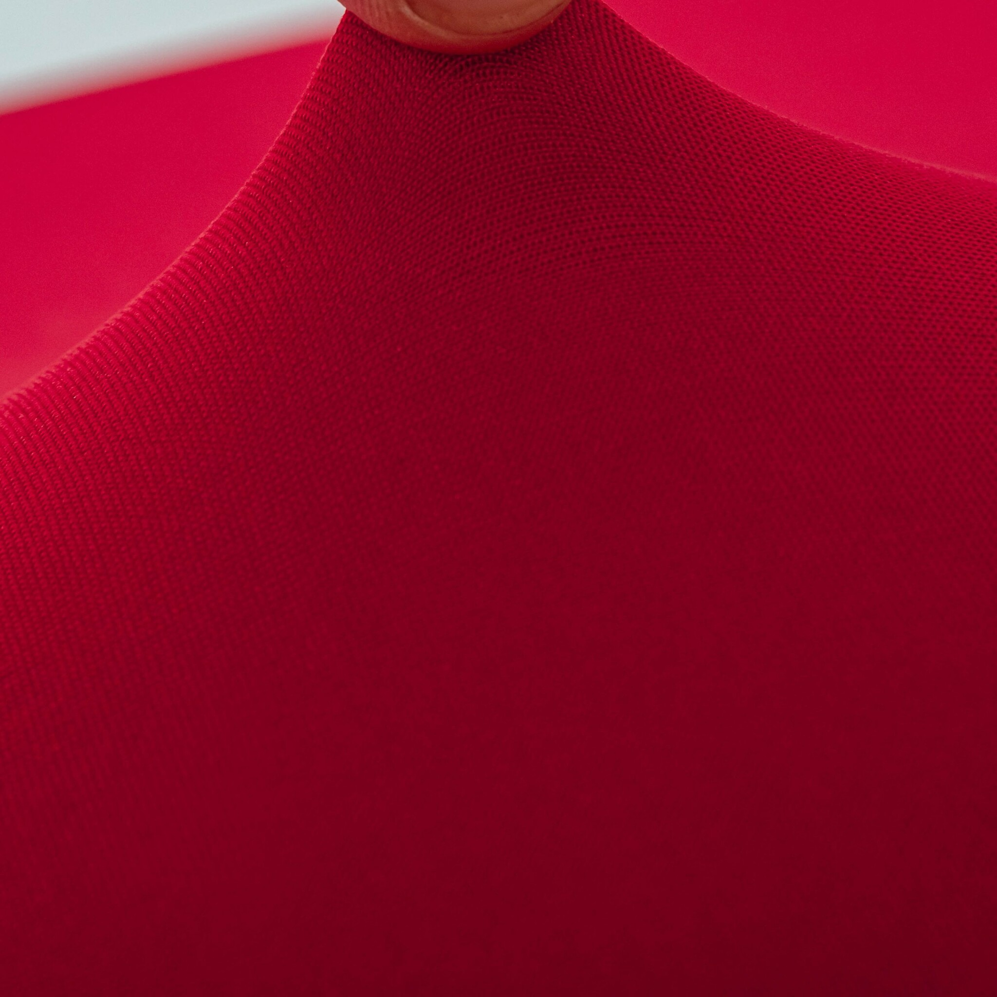 Het rood van deze statafelhoes is perfect te combineren met andere kleuren