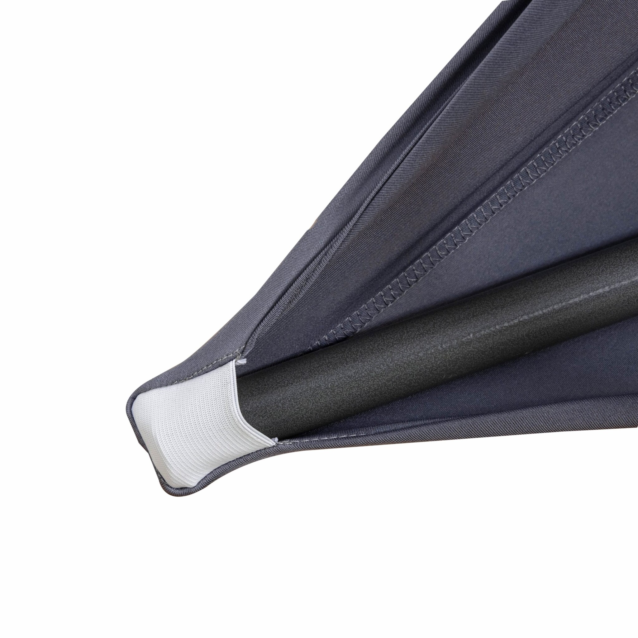 Het grijs van deze statafelhoes is perfect te combineren met andere kleuren