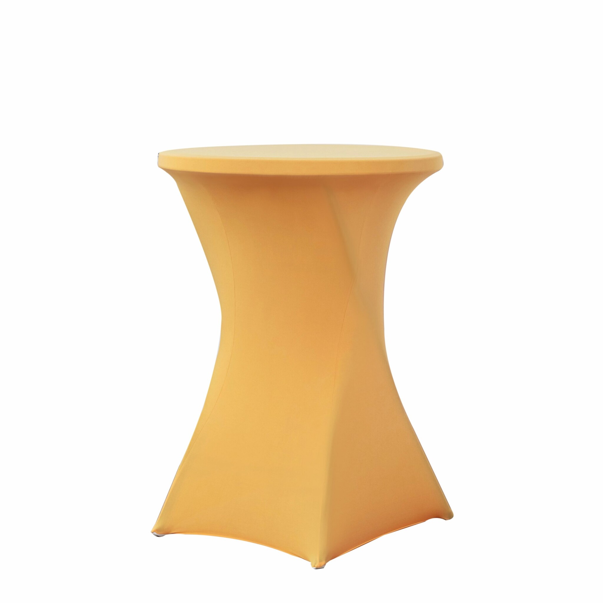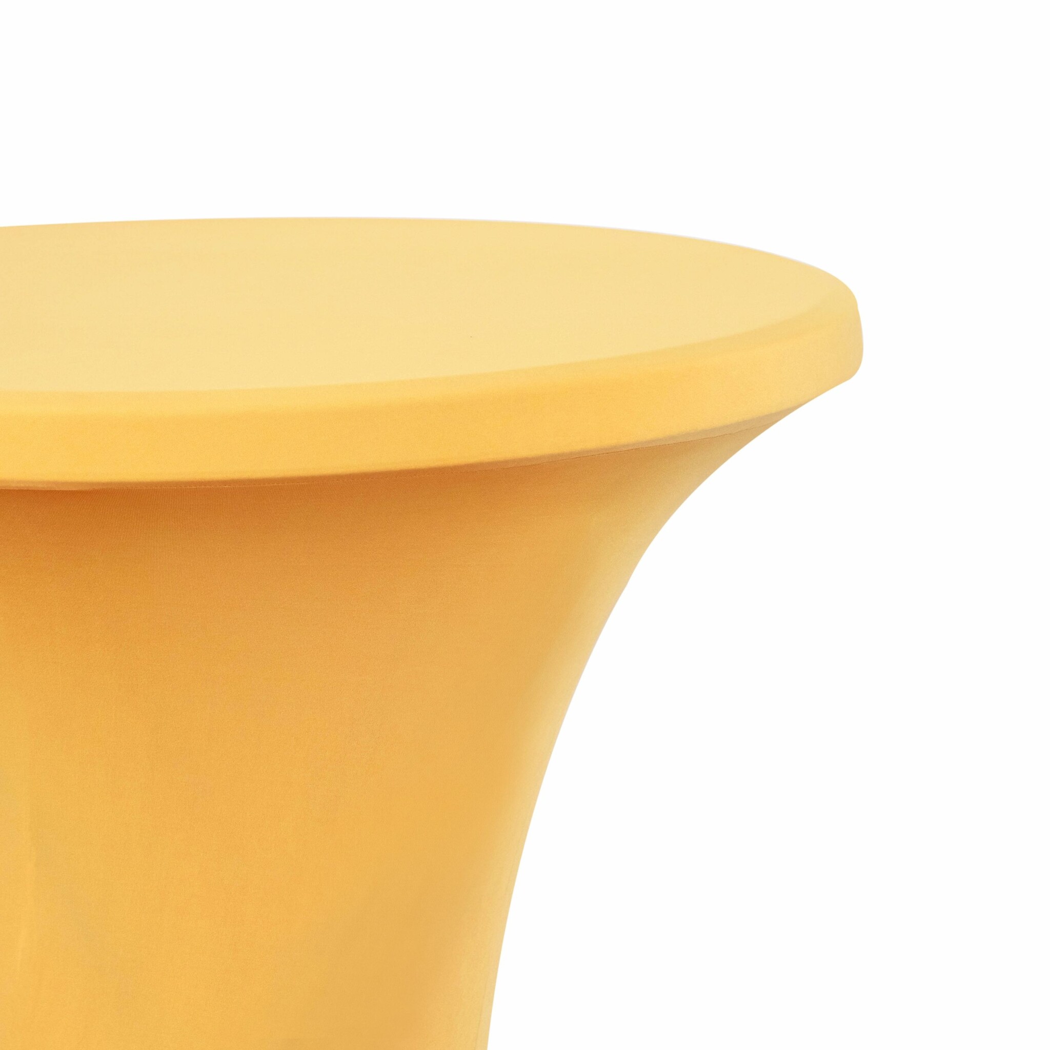 Geef je feest of evenement direct een luxe uitstraling met deze okergele statafelrok van Alora. De statafelhoes is geschikt voor ronde statafels met een hoogte van 110 cm en een tafelblad met een diameter van 80 cm. Dankzij de soepele stretchstof sluit de statafelhoes mooi aan en is deze gemakkelijk op de tafel te bevestigen. Om slijtage te voorkomen is de statafelhoes bij de poten extra verstevigd.