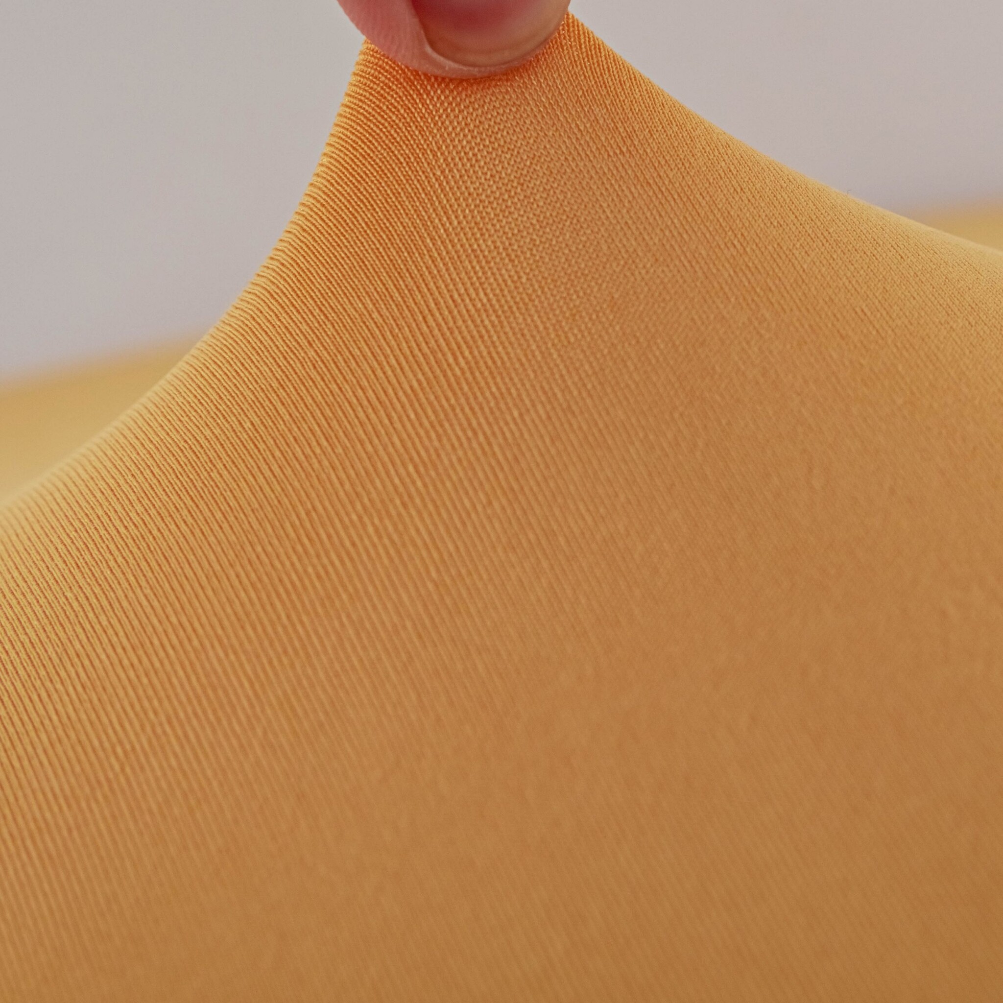 Het okergeel van deze statafelhoes is perfect te combineren met andere kleuren
