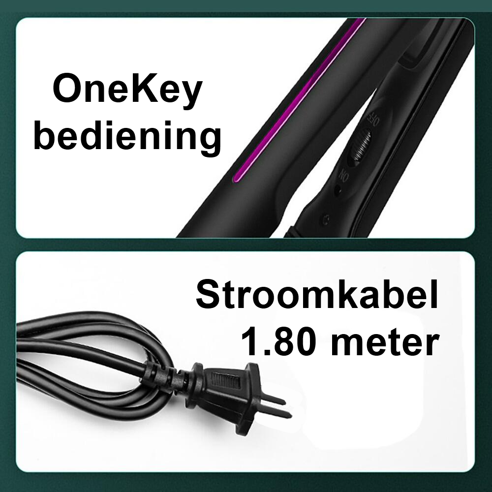De speciale QuickHeat functie van de stijltang zorgt ervoor dat deze binnen 15 seconden klaar is voor gebruik. Met de OneKey functie zet je de stijltang in één keer aan en begint deze direct op te warmen. Hierdoor hoef je maar heel even te wachten en kun je vrijwel meteen aan de slag gaan!