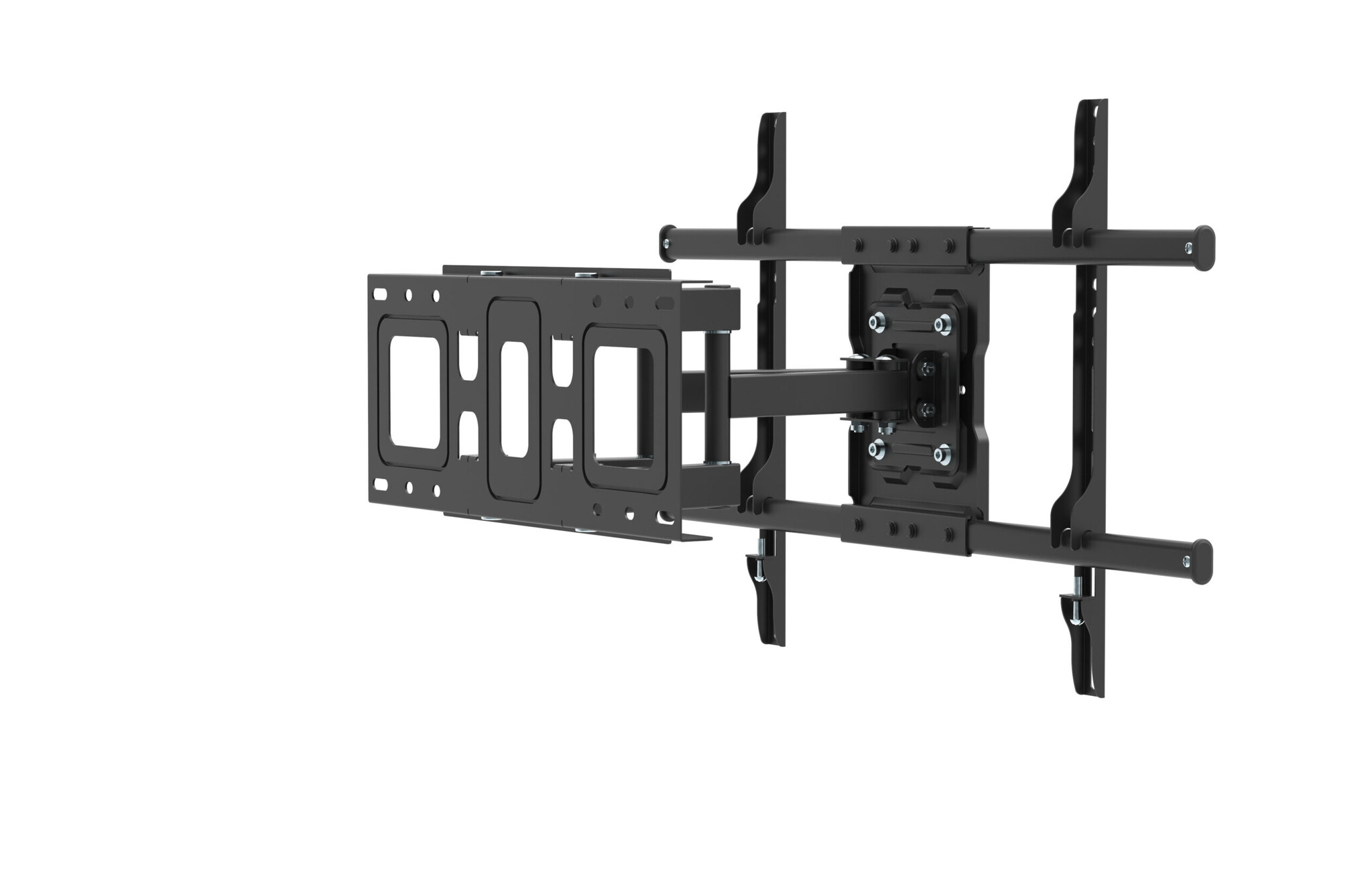 Let op! Wanneer de aansluitingen van je tv zich binnen de 4 bevestigingspunten bevinden, is tv-beugel RockSolid mogelijk niet geschikt vanwege de horizontale plaat waarop de televisie bevestigd wordt. Kies in dat geval een van onze muurbeugels met een open ontwerp.
