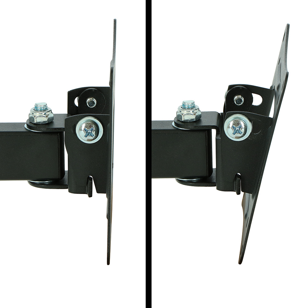 Deze multifunctionele muurbeugel is 180° draaibaar en kantelbaar van 5° omhoog tot 15° omlaag, zodat je altijd de ideale kijkhoek creëert. Perfect voor thuiswerken, studeren, gamen of ontspannen tv-kijken. Dankzij de geïntegreerde kabelgoot houd je alles netjes en overzichtelijk.