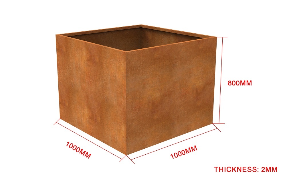 De Vierkante Plantenbak 1000x1000x800 mm is een echte blikvanger voor elke tuin of buitenruimte. Deze royale plantenbak is gemaakt van hoogwaardig cortenstaal, dat bekendstaat om zijn warme roestkleur en lange levensduur. Door de natuurlijke oxidatielaag is de bak volledig weerbestendig en onderhoudsvrij, ideaal voor gebruik in elk seizoen.