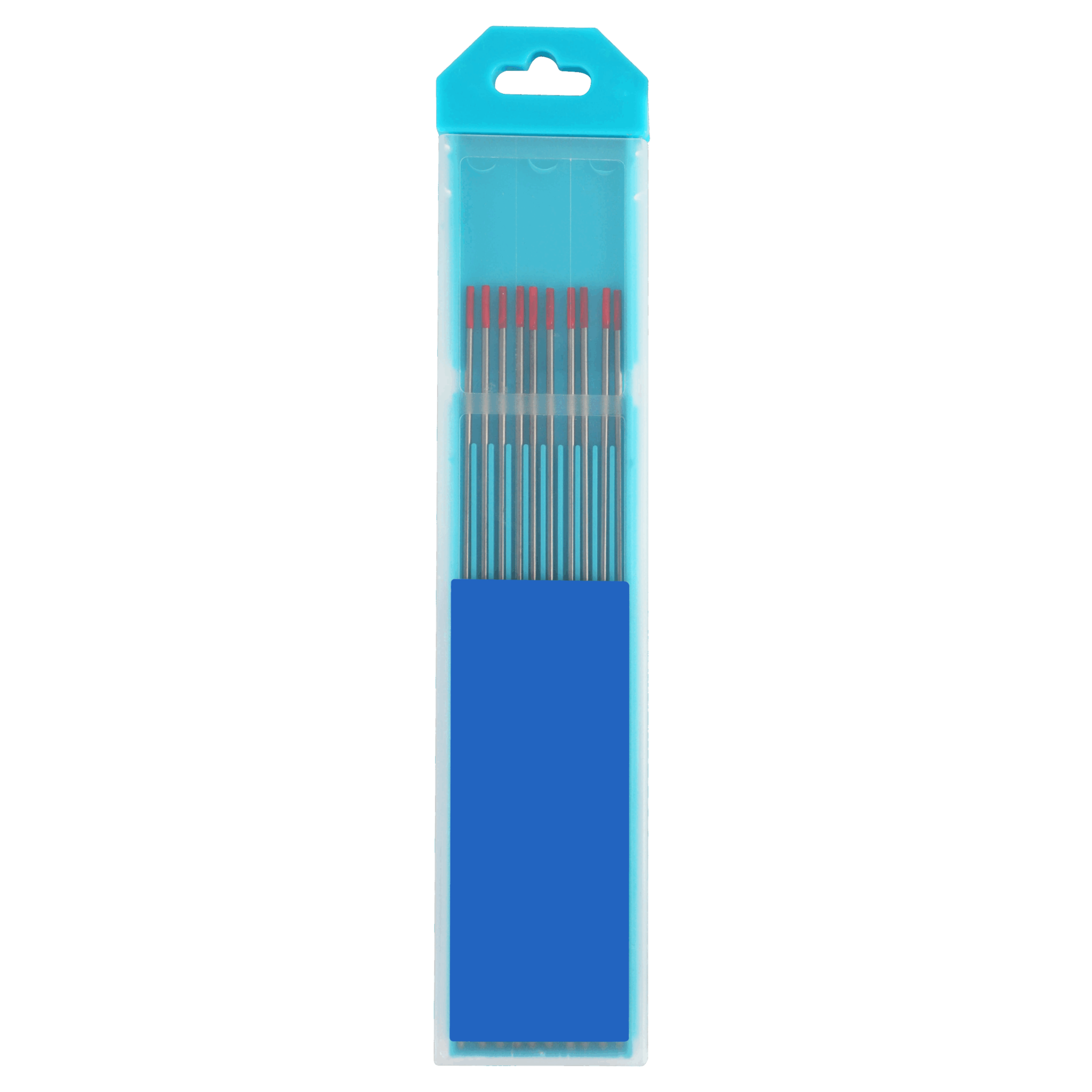 Rode markering volgens internationale normering De rode kop is niet zomaar gekozen: dit is de kleurcodering voor WT20-elektroden, een veelgebruikt type in TIG-laswerk. Ze bevatten een kleine hoeveelheid thoriumoxide, wat dit type onderscheidt van andere varianten.