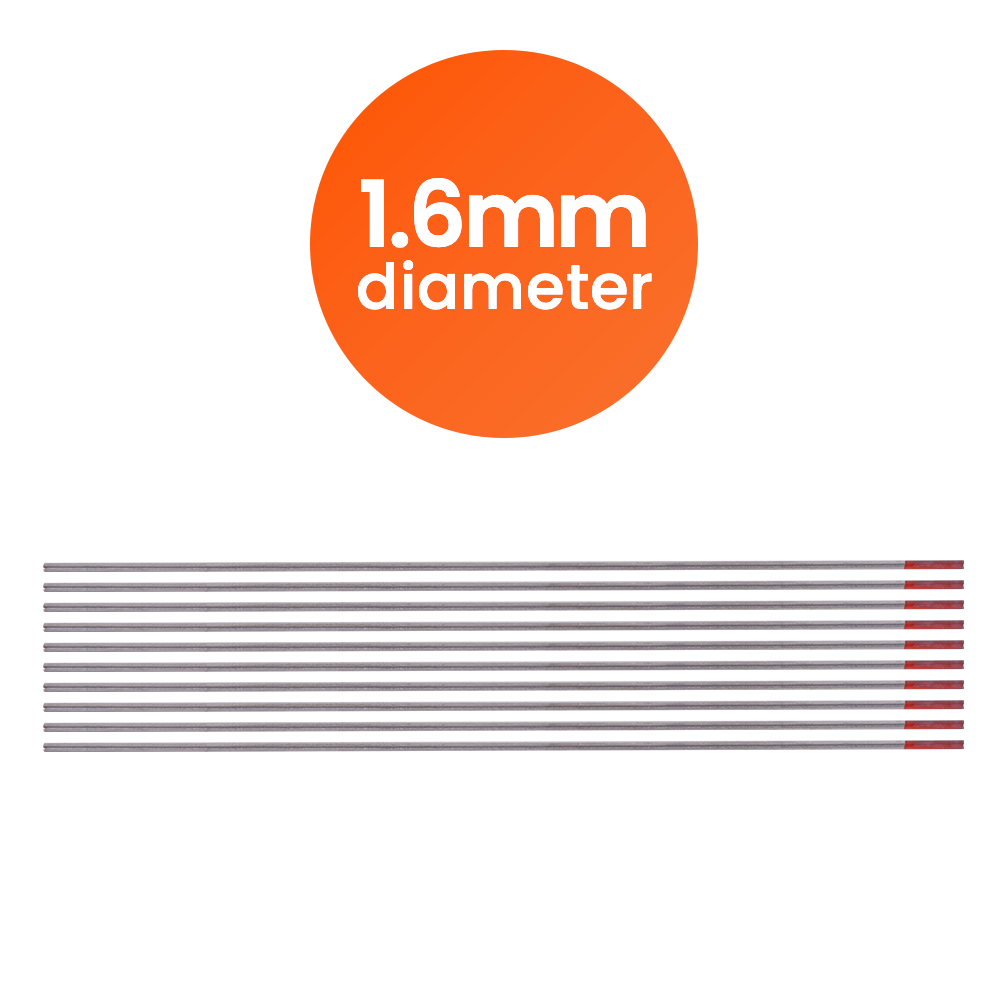 Verpakking van 10 stuks Deze set bestaat uit 10 elektroden met een diameter van 1,6 mm. Dit formaat is compatibel met TIG-lasapparaten die elektroden in die maat ondersteunen.